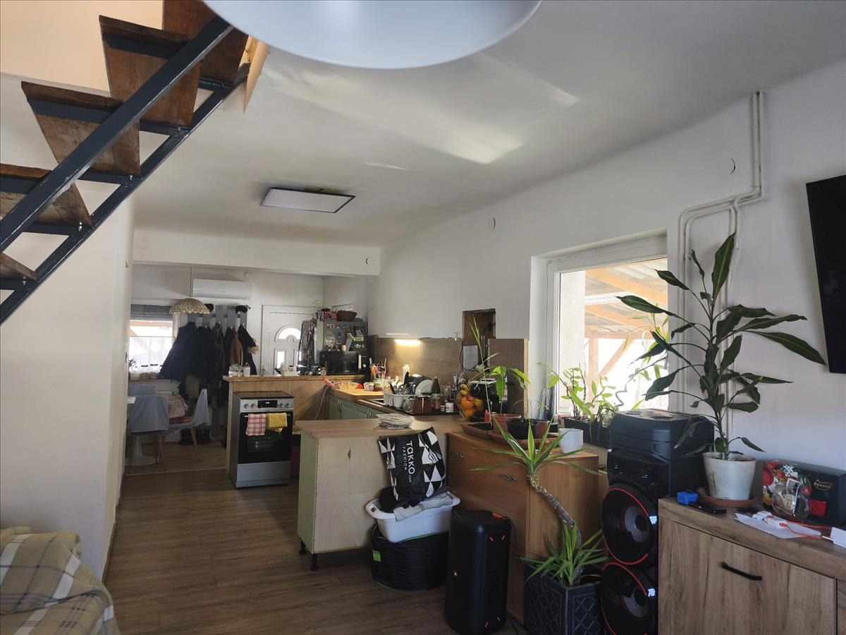 Félemeleten: Előszoba - konyha - nappali egyben, külön egy zuhanyzós fürdőszoba