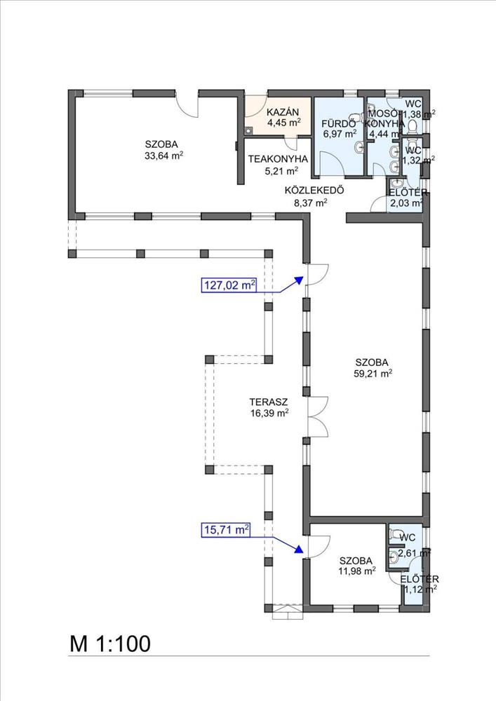 •Belső kialakítás: Két óriási közösségi terem, konyha, vizesblokkok, valamint egy külön bejáratú utcafronti iroda/üzlethelyiség/lakóegység.