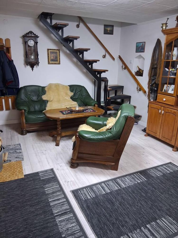 Az alsó szinten nappali, konyha, fürdő (WC-vel), spájz található. Az emeleten 2 szoba, előtér, mosdó wc-vel. Az épület fűtése vízteres öntvény látványkandallóval és radiátorokkal került kialakításra; továbbá 1-1 inverteres hűtő-fűtő klíma található az alsó és a felső szinten is. Az épülettel egybeépítve egy távirányítós kapuval ellátott 24 nm -es garázs is tartozik az ingatlanhoz. a garázs egyben műhelyként van berendezve értékes szerszámokkal (köszörűgép, oszlopos fúrógép, inverteres hegesztő, kéziszerszámok, Scheppack 8t rönkhasító stb. ).