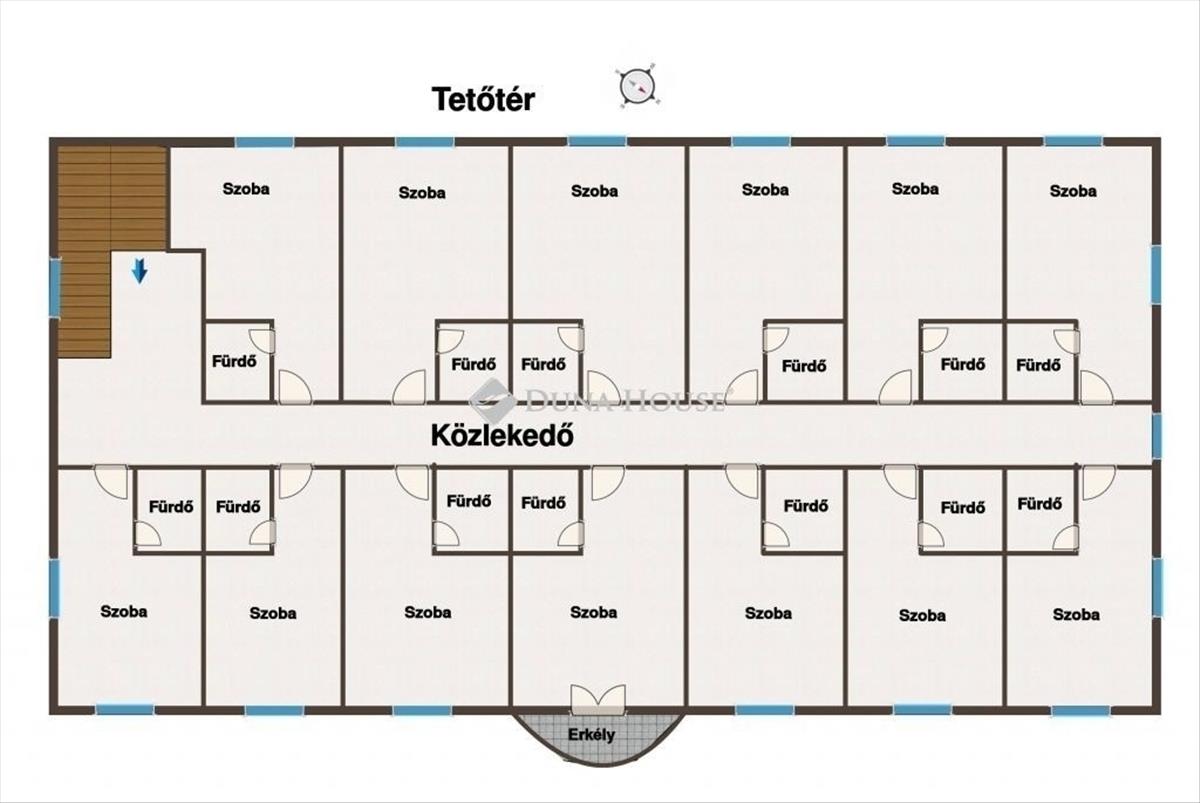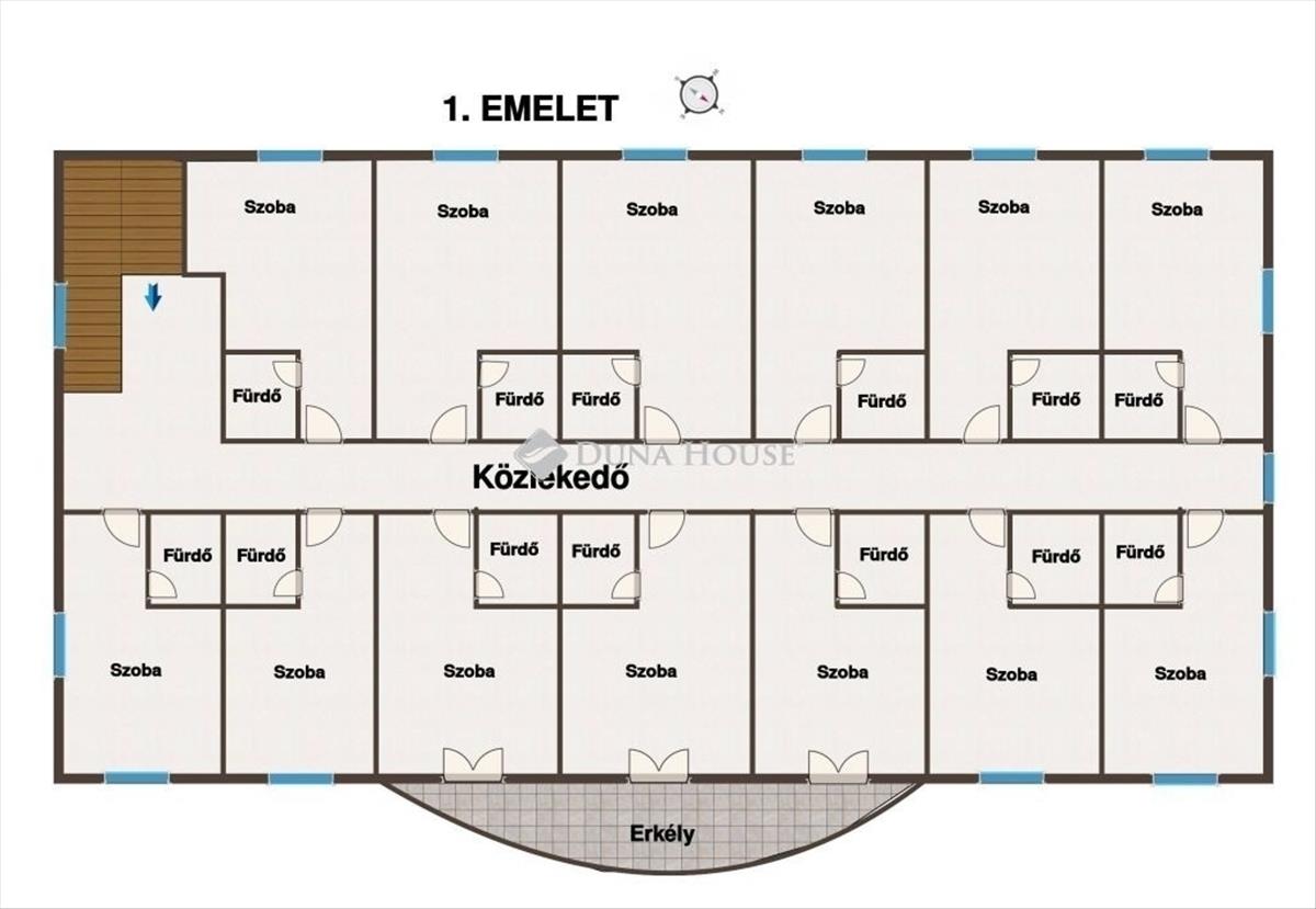 Összesen 26 szoba, amely szállásnak, munkásszállónak, panziónak vagy irodahelyiségeknek is könnyen átalakítható.
