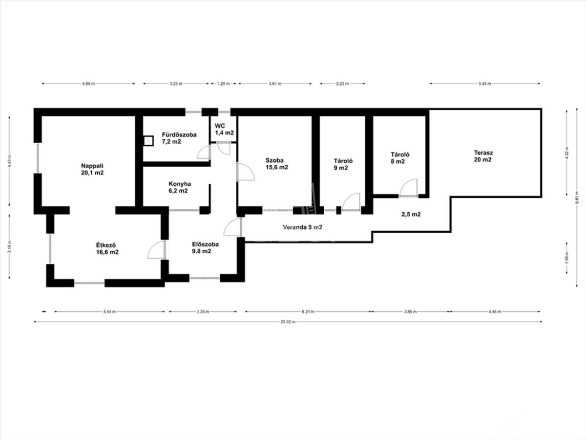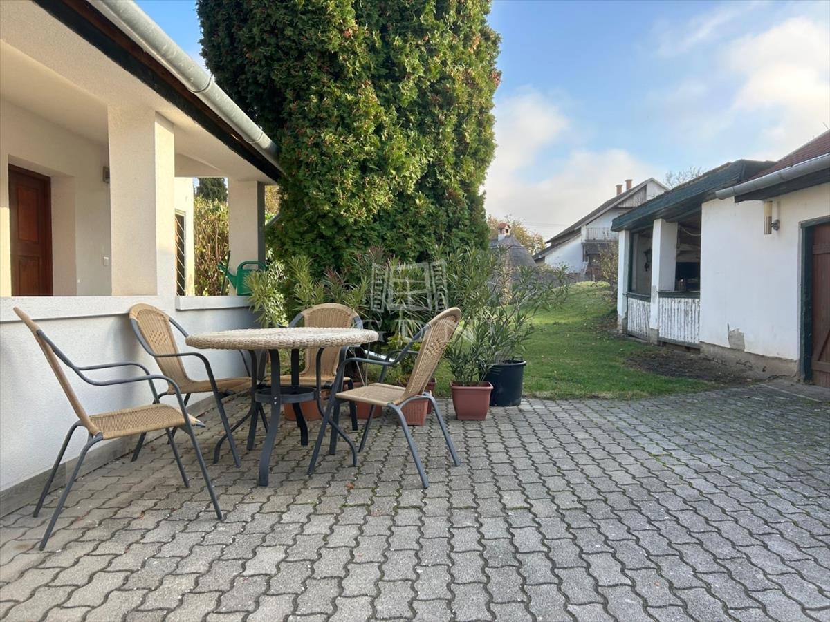 A ház 37 m2-es nappali-étkező, előszoba-étkező, konyha, fürdőszoba, wc, közlekedő helyiségekből áll. További hálószoba leválasztással kialakítható, illetve a verandáról nyíló jelenleg tároló funkciót ellátó helyiség is alkalmas lehet szoba kialakítására. Az épülethez csatlakozik egy tároló és egy 20 m2-es terasz, illetve a ház mellett található egy külön épület, fedett kiülő és pince. a kert gondozott, öntözése ásott kútból lehetséges. Ár: 82 MFt FIX 3% lakáshitelre megvehető