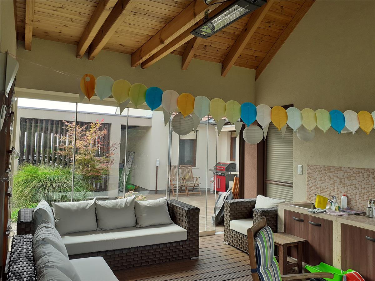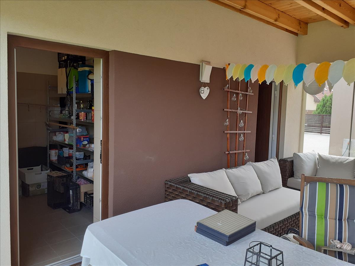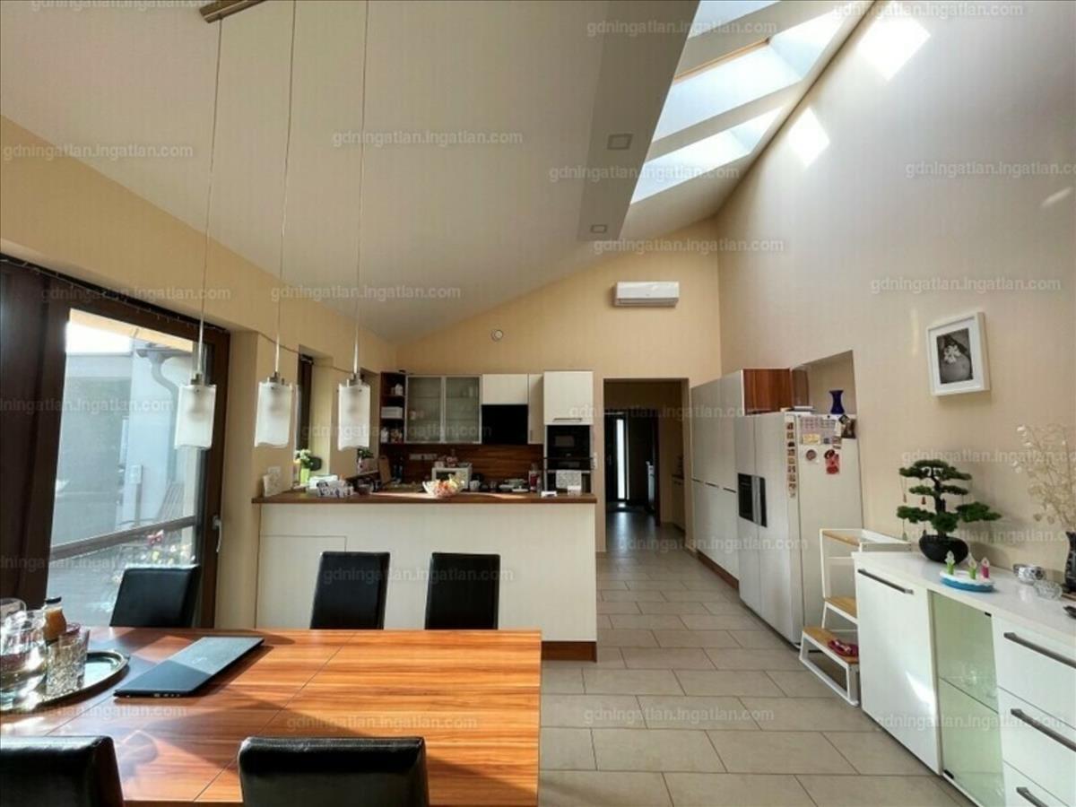 Gárdony, Dinnyési részében, a legigényesebb, presztizs értékű utcában, a Vajda János utcában, eladó, 1265 négyzetméter telken, egy 2013-ban, nagyon igényes anyagokból, rendkívül esztétikus, kicsit minimál stílusú, profi műszaki megoldásokkal épült, családi otthon.Az épület 275 négyzetméter, ebből 141 négyzetméter jelenti a napi életteret, 4 szobával, a konyha, étkezővel, amerikai konyha stílusú, csak a nappali 26 négyzetméter. a szobák élhető méretűek, külön nyílnak, szeparáltak. Van még két fürdőszoba, vendég wc külön, de a ház alapterületéhez tartozik még, a házgépészeti szoba kazánnal, - nem tekinthető kazánháznak, mert annál lényegesen igényesebb, és ami rakodó hely is lehet mert nagyon tágas. Kettő gardrób, nagyok, tágasak, beépített szekérenyekkel, egy 24 négyzetméteres fedett terasz, amiben akár még egy konyhát ki lehetne alakítani, mert minden gépészet kialakított ehhez, de jelenleg tárgyaló funkciót tölt be, nagyon kellemesen, világos, ingergazdag környezetet adva a munkához. a fedett terasz mindkét oldalát, 10-10nm-es eltolható üveglapok határolják, tehát mintha a szabadban ülne nyáron, és meleg, télikert hangulatú lehet télen. Innen nyílnak egy kerti butorok raktára, és egy kamra, családi nassoló helynek, valamint kijárás a ház teraszára, ami védett, körbeöleli a ház, és nagyon kellemesen tágas, 27 négyzetméter. a fedett, zárt terasz is, és a nyitott terasz is bangkirai faburkolattal kerültek lefedésre, amiről úgy tartják, hogy "egy élet, és még pár nap. " a nyitott teraszra, természetesen, a nappaliból is van kijárás.