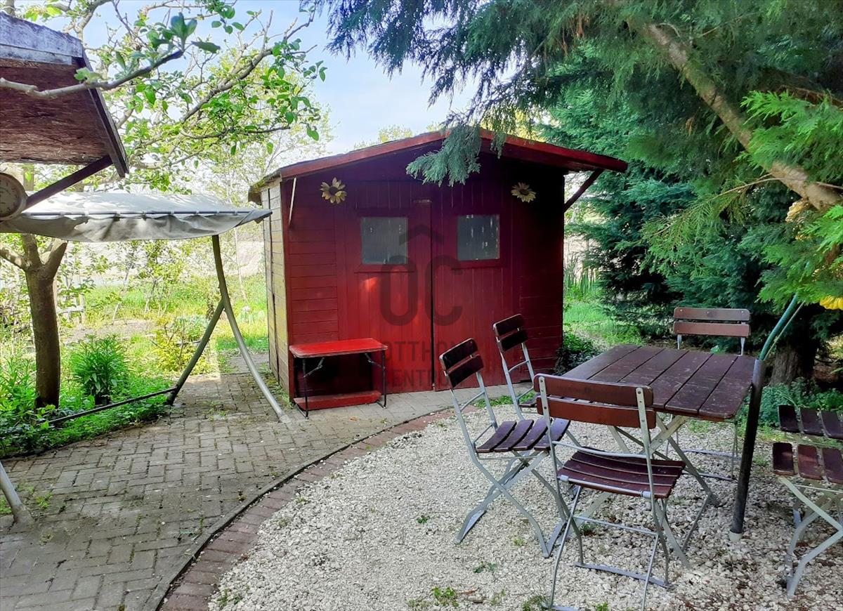 Kertben egy fedett kiülőn kívül van még egy pergola tetejű is és a kert hátsó részén két faház tárolás céljából.