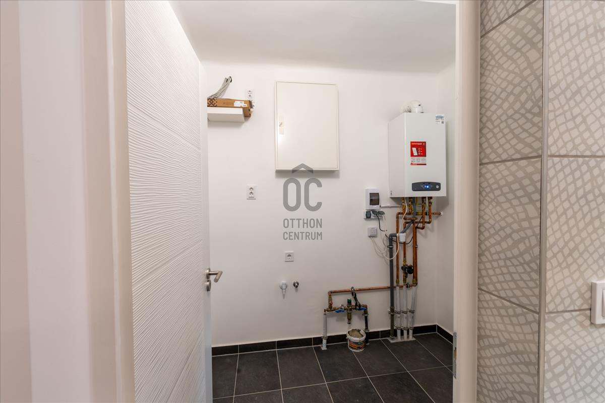 Az ingatlanban a villany (3 x 16 a), vízvezetékek, csatornarendszer összes eleme, kicserélésre került. Új Ariston (wifis) fali kondenzációs kombi gázkazán került beépítésre.