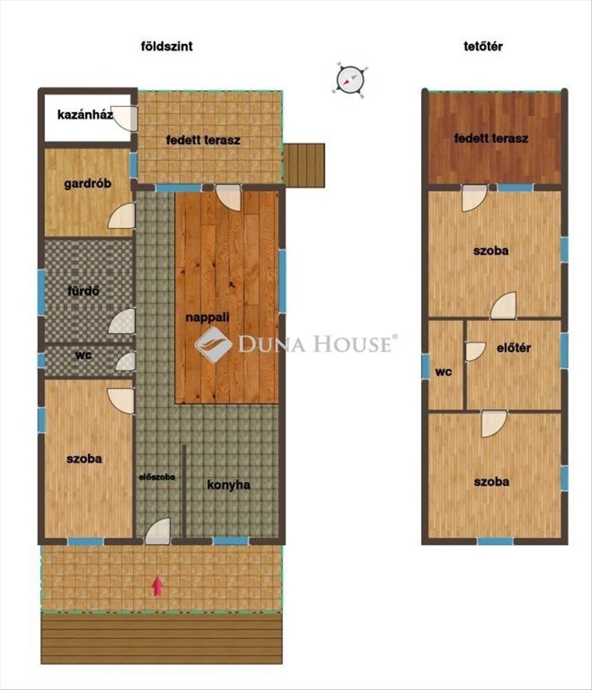 Eladó Gárdonyban a központ közelében, kellemes, nyugalmas, aszfaltozott utcában egy 2002-ben épült, 113nm-es, könnyűszerkezetes családi ház.A földszinten amerikai konyhás nappali+1 szoba, fürdő, külön wc, gardróbszoba és előszoba, a tetőtérben 2 hálószoba és wc került kialakításra, itt egy fedett erkély is van.