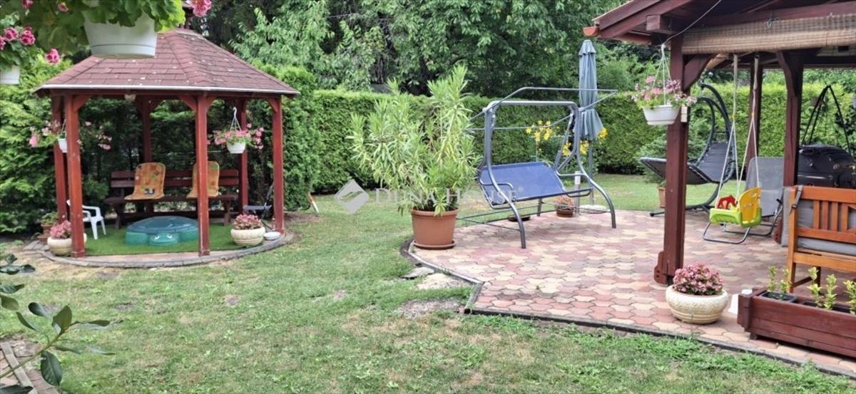 A szépen gondozott kertben térburkolatú fedett terasz, kerti pavilon, kemence és sütögető találhatóak.