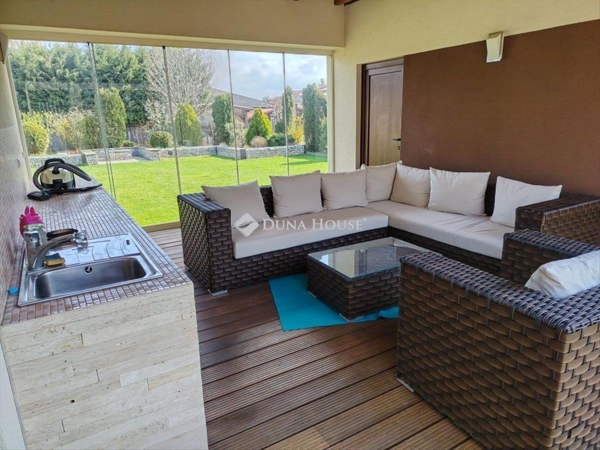 Gárdony-Dinnyés településen, új építésű, családi házas övezetben eladásra kínálunk egy 1265 nm 2-es telken fekvő, 275 nm -es (ebből 141 nm lakóterületű) ingatlant. 3 Szoba, amerikai konyhás, tágas nappali, 2 fürdőszoba (egyikben wc-zuhanyzó, másikban wc-kád), különálló wc, 2 gardrób, előszoba, kazánház, mosószoba található benne. Az ingatlan 2014-ben épült, egyedi látványtervező által. Fedett garázs az épület bejáratához közel, illetve egy zárt terasz, melyben konyha, 2 tároló található. Ezek mellett egy nyitott terasz is rendelkezésre áll. Az ingatlanban elektromos redőnyökkel ellátott, 3 rétegű, üveg nyílászárók vannak, a tágas tér mellett biztosított a napfényes környezet. Az amerikai konyhás nappaliban a beépített bútorok, illetve a beépített konyhai eszközök (mosogatógép, sütő, főzőlap, páraelszívó, mikrohullámú sütő, hűtő), a beépített gardrób szekrények, a szoba bútorok többsége azonnali beköltözést ajánl leendő tulajdonosának. a házban padlófűtés biztosítja az állandó kellemes meleget, a kondenzációs kazán mellett egy kályha biztosítja a hangulatot, illetve a meleget alternatív megoldásként. a házban riasztóberendezés működik, illetve külső mozgásérzékelők biztosítják a nyugalmat-biztonságot, illetve a házban vezetékes internet is kiépítésre került, központi pórszívó, hőcserélős szellőztető, rezsije kb 40. 000 Forint. a kert gondozott, tágas, de helyett kapott 4 magaságyás, illetve gyümölcsfák, tárolóhelyiségek, vakodhálóA ház körben zárt, a kocsibehajtást elektromos kapu biztosítja a 3 oldalról zárt kocsibeálló helyiségbe (2 autó elfér benne). Ha egy igazán hagyományőrző településen szeretne megpihenni, ajánljuk figyelmébe az ingatlant.