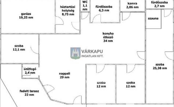 Nagy nappali, rózsafából amerikai stílusban készült, gépesített konyha tágas étkezővel. 3 Hálószoba és 1 hátsó külön helység (kb. 44 Nm) amiben található egy Finn szauna vizesblokkal. Mosó konyha, fürdőszoba, 3 különálló mellékhelyiség és a konyha mellett spájz. Tartozik hozzá egy 20 négyzetméteres fűtött garázs, ami szobává alakítható. a tetőtér teljes egészében beépíthető, így többgenerációs házzá alakítható.