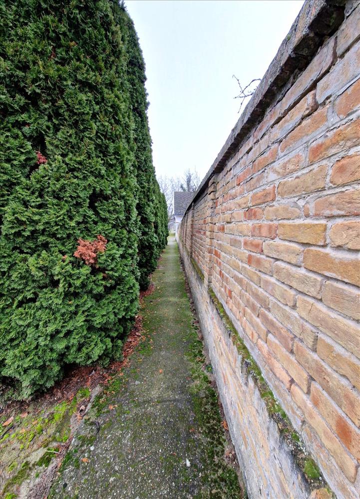 A széles utcafronttal, kb. 45 M kőkerítéssel rendelkező 1440 m2-es körbekerített telek kiváló lehetőséget nyújt kertészkedésre, kishajó, csónak tárolásra, több autó parkolására. a ház folytatásában lévő melléképület pedig bőséges helyet biztosít tárolásra.