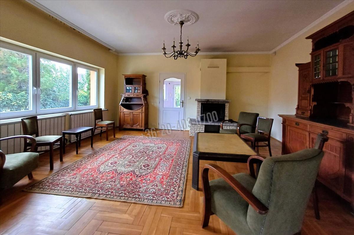 Körbenapozott földszintjén tágas fogadótérből nyílik balra a konyha étkezővel, fürdőszoba káddal, külön helyiségben toalett és két hálószoba. Szemben található az impozáns nappali kandallóval és a teraszkapcsolatos télikert.