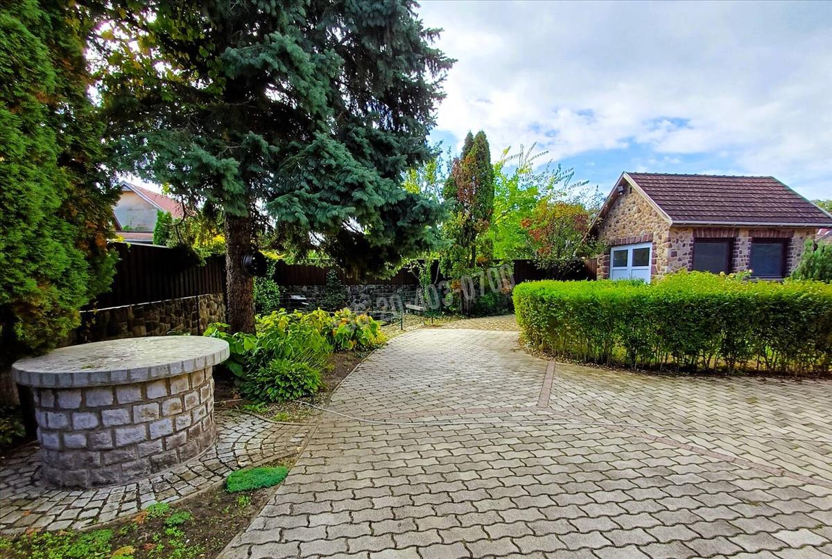 Pest vármegyei Göd csendes utcájában kínálok eladásra 750 m2-es telken egy önálló, 3 szintes, téglaépítésű 300 m2-es, 6 szobás, kétgenerációs családi házat garázzsal, parkosított kerttel, kerti tóval, valamint vállalkozásra is alkalmas melléképülettel.Különleges megvalósításának köszönhetően a kert egyedi hangulatot áraszt. a színben és formában is válogatott terméskövek különböző megjelenítése barátságos keretet ad az ősfáknak és a növényeknek, valamint szépen kiemeli a kertben található dolgokat, legyen az egy kerti kút, kerítésben megbújó dekor, kerti tavat körülölelő ösvény vagy egy barátságos kis melléképület. a fűthető melléképület számos megvalósítási lehetőséget hordoz: garázsként, műhelyként, stúdióként is használható helyisége mellett elkülönítve fatárolót, szerszámtárolót és borospincét is találunk.