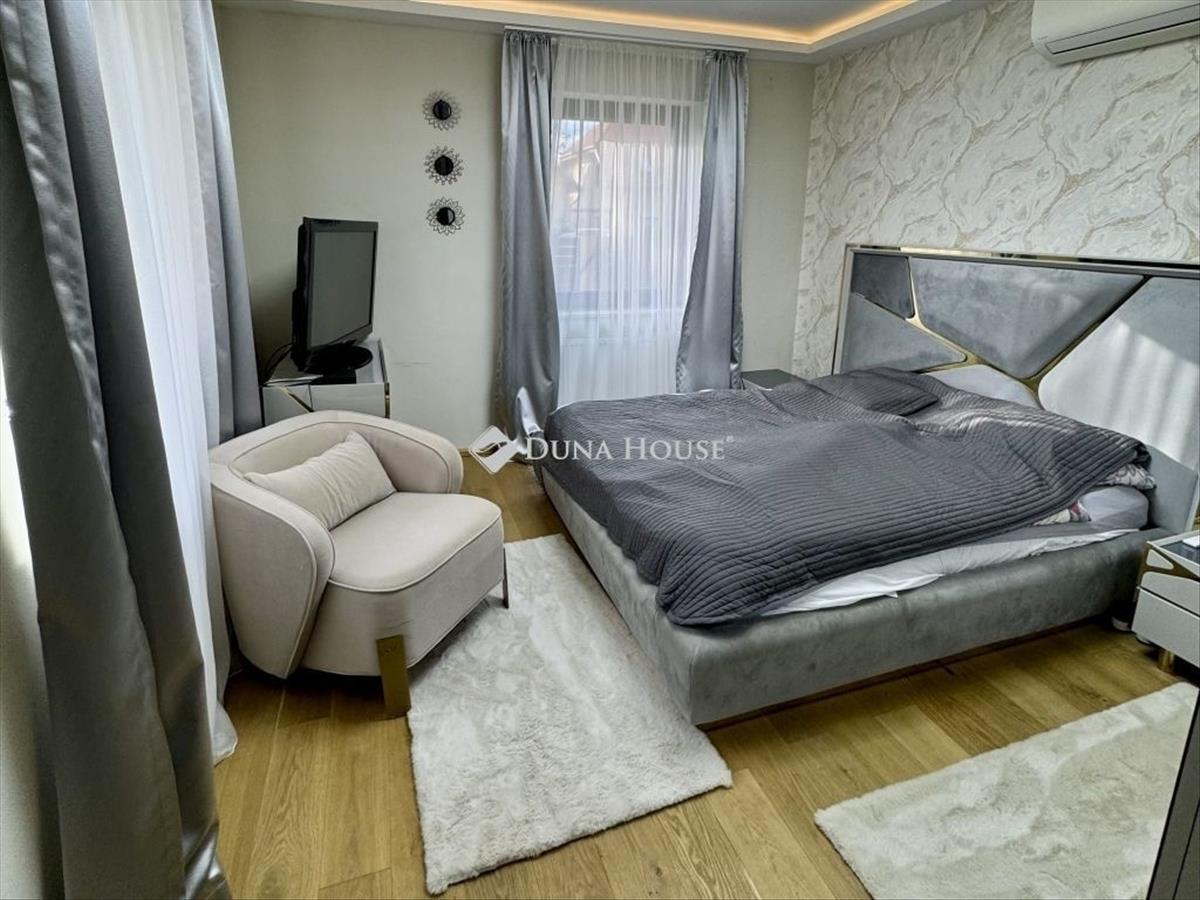 A külön álló családi ház egy 900 nm-es parkosított telken fekszik, ahová elektromos kapun jutunk be, és melyen 3 autónak van beálló. Található rajta egy kerti kis ház tárolásra és egy 6x3 m-es medence is. a 130 nm-es terasz fele fedett, mely téli-nyári sütögetésre, pihenésre alkalmas. Körülötte gyepszőnyeg elektromos öntözőrendszerrel. a 2014-ben magas műszaki tartalommal épült, bruttó 330 nm-es, (nettó 290 nm) házban található egy garázs, melyből a tágas előtérbe jutunk, ahol beépített szekrények biztosítják a család ruháinál a tárolását. a házban a Glamour stílus uralkodik, melynek minden részét lakberendező álmodta meg! Innen nyílik a hatalmas átriumos teraszkapcsolatos 67 nm-es nappali is, a 27 nm-es étkezős prémium kategóriás konyha, mely kényelmes életteret biztosít egy nagycsalád számára! Az alsó szinten található még egy dolgozó szoba, wc, és egy külön álló fürdőszobás lakrész a vendégek számára! Az eredeti tölgyfa lépcsőn jutunk fel a háló traktusra. Itt találjuk az elegáns szülői hálót-gardróbbal és a 4 személyes Finn szaunával ellátott fürdőszobát. a két gyerekszobához tartozik egy fürdőszoba és gardrób is! Minden szoba hűtő-fűtő klímával ellátott. a nappaliban fatüzelésű kandalló, padlófűtés biztosítja a meleget. Az elektromos szúnyoghálós redőnyös passzív ablakok, és 15 grafitos szigetelés miatt a ház rezsije minimális. Az egész házon végig futó szellőztető rendszer, biztosítja a család számára a mindenkori friss levegőt. Mindenhol prémium kategóriás tapéták, burkolatok és beépített bútorok biztosítják az egységes enteriőrt! a lakásban található egyedi bútorok, lámpák, textilek külön megállapodás tárgyát képezik. a házban kamerás riasztórendszer működik. a környék csodálatos, családbarát környezet, kiváló infrastruktúrával ellátott.