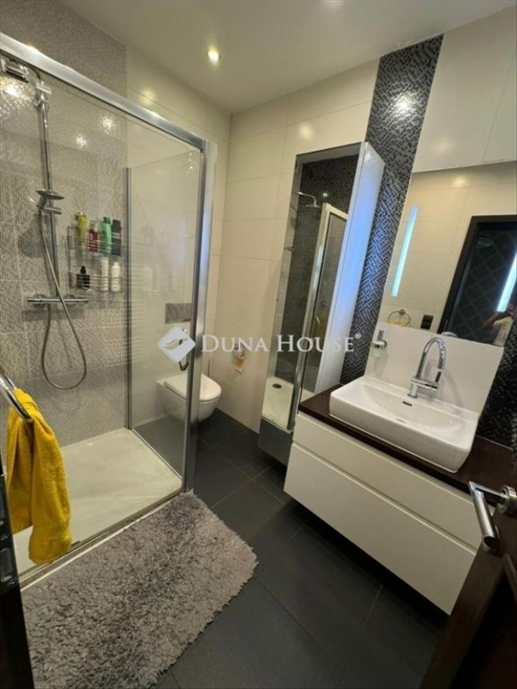 Glamour Home az Oázis Lakóparkban! Eladó Göd legszebb részének legszebb háza! a külön álló családi ház egy 900 nm-es parkosított telken fekszik, ahová elektromos kapun jutunk be, és melyen 3 autónak van beálló. Található rajta egy kerti kis ház tárolásra és egy 6x3 m-es medence is. a 130 nm-es terasz fele fedett, mely téli-nyári sütögetésre, pihenésre alkalmas. Körülötte gyepszőnyeg elektromos öntözőrendszerrel. a 2014-ben magas műszaki tartalommal épült, bruttó 330 nm-es, ( nettó 290nm)es házban található egy garázs, melyből a tágas előtérbe jutunk, ahol beépített szekrények biztosítják a család ruháinál a tárolását. a házban a Glamour stílus uralkodik, melynek minden részét lakberendező álmodta meg! Innen nyílik a hatalmas átriumos teraszkapcsolatos 67 nm-es nappali is, a 27 nm-es étkezős prémium kategóriás konyha, mely kényelmes életteret biztosit egy nagycsalád számára! Az alsó szinten található még egy dolgozó szoba, wc, és egy külön álló fürdőszobás lakrész a vendégek számára! Az eredeti tölgyfa lépcsőn jutunk fel a háló traktusra. Itt találjuk az elegáns szülői hálót-gardróbbal és a 4 személyes Finn szaunával ellátott fürdőszobát. a két gyerekszobához tartozik egy fürdőszoba és gardrób is! Minden szoba hűtő-fűtő klímával ellátott. a nappaliban fatüzelésű kandalló, padlófűtés biztosítja a meleget. Az elektromos szúnyoghálós redőnyös passzív ablakok, és 15 grafitos szigetelés miatt a ház rezsije minimális. Az egész házon végig futó szellőztető rendszer, biztosítja a család számára a mindenkori friss levegőt. Mindenhol prémium kategóriás tapéták, burkolatok és beépített bútorok biztosítják az egységes enteriőrt! a lakásban található egyedi bútorok, lámpák, textilek külön megállapodás tárgyát képezik. a házban kamerás riasztórendszer működik. a környék csodálatos, családbarát környezet, kiváló infrastruktúrával ellátott. Göd a Duna partján fekszik, távol a város zajától mégis 20 percre tőle. a folyóparti sétányok, kerékpárutak és zöld területek ideálisak kikapcsolódásra, sportolásra. Igényes családok figyelmébe ajánlom ezt a páratlan ingatlant. Rugalmasan mutatható. Ingyenes hiteltanácsadással, és további kérdéssel várom megtisztelő hívását hétvégén is! Hitel.hu - Hasonlítsa össze a bankok lakáshitel ajánlatait