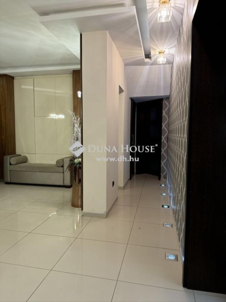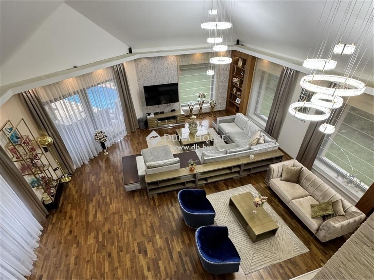 Glamour Home az Oázis Lakóparkban! Eladó Göd legszebb részének legszebb háza! a külön álló családi ház egy 900 nm-es parkosított telken fekszik, ahová elektromos kapun jutunk be, és melyen 3 autónak van beálló. Található rajta egy kerti kis ház tárolásra és egy 6x3 m-es medence is. a 130 nm-es terasz fele fedett, mely téli-nyári sütögetésre, pihenésre alkalmas. Körülötte gyepszőnyeg elektromos öntözőrendszerrel. a 2014-ben magas műszaki tartalommal épült, bruttó 330 nm-es, ( nettó 290nm)es házban található egy garázs, melyből a tágas előtérbe jutunk, ahol beépített szekrények biztosítják a család ruháinál a tárolását. a házban a Glamour stílus uralkodik, melynek minden részét lakberendező álmodta meg! Innen nyílik a hatalmas átriumos teraszkapcsolatos 67 nm-es nappali is, a 27 nm-es étkezős prémium kategóriás konyha, mely kényelmes életteret biztosit egy nagycsalád számára! Az alsó szinten található még egy dolgozó szoba, wc, és egy külön álló fürdőszobás lakrész a vendégek számára! Az eredeti tölgyfa lépcsőn jutunk fel a háló traktusra. Itt találjuk az elegáns szülői hálót-gardróbbal és a 4 személyes Finn szaunával ellátott fürdőszobát. a két gyerekszobához tartozik egy fürdőszoba és gardrób is! Minden szoba hűtő-fűtő klímával ellátott. a nappaliban fatüzelésű kandalló, padlófűtés biztosítja a meleget. Az elektromos szúnyoghálós redőnyös passzív ablakok, és 15 grafitos szigetelés miatt a ház rezsije minimális. Az egész házon végig futó szellőztető rendszer, biztosítja a család számára a mindenkori friss levegőt. Mindenhol prémium kategóriás tapéták, burkolatok és beépített bútorok biztosítják az egységes enteriőrt! a lakásban található egyedi bútorok, lámpák, textilek külön megállapodás tárgyát képezik. a házban kamerás riasztórendszer működik. a környék csodálatos, családbarát környezet, kiváló infrastruktúrával ellátott. Göd a Duna partján fekszik, távol a város zajától mégis 20 percre tőle. a folyóparti sétányok, kerékpárutak és zöld területek ideálisak kikapcsolódásra, sportolásra. Igényes családok figyelmébe ajánlom ezt a páratlan ingatlant. Rugalmasan mutatható. Ingyenes hiteltanácsadással, és további kérdéssel várom megtisztelő hívását hétvégén is!