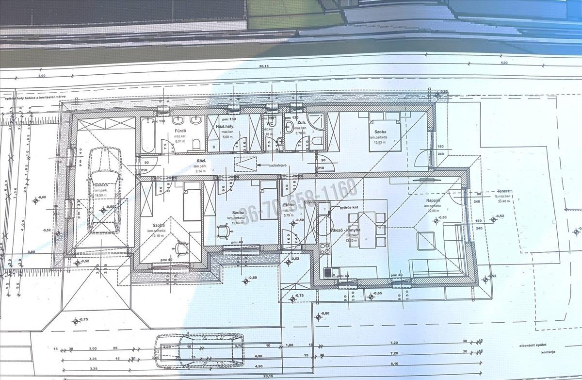 • Elrendezés: amerikai konyhás nappali + 3 hálószoba + 2 fürdőszoba + kamra + gardrób + háztartási helyiség.