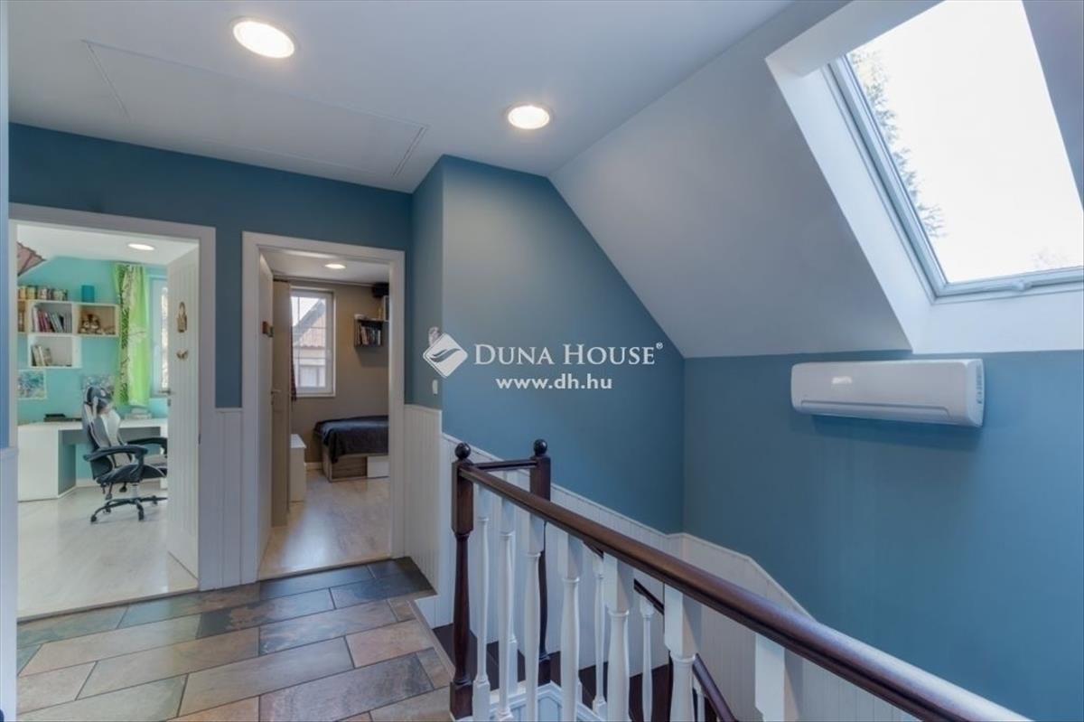 Angol stílusú, igényesen kivitelezett és berendezett, 2 szintes, 186 m2-es, 5 szobás családi ház Göd Dunához közeli, lakó-pihenő övezetében! Az 540 m2-es telken lévő, elő-, oldal és hátsó kerttel, benne örökzöldekkel, gyümölcsfákkal ölelt, szintenként 93 m2-es ház 2012-ben épült és mindössze pár perc sétára található a Duna-parttól, csárdáktól és a Bp-Szob kerékpárúttól. Az impozáns, egyedi külső megjelenés és kiváló elosztás gondos tervezői munka eredménye, fő szempont az élhető terek kialakítása és a praktikus helykihasználás, melyhez magas minőségű anyagok felhasználása és kivitelezés társult. a szürke terméskő homlokzat, a zöld spaletták, a fehér ablakok, a tetőtér megformálása az angol vidéki táj varázslatos világát hozza el. a délnyugati fekvésű, körbe napozott ház a telek utcához közelebb eső részén található, földszinti, emeleti helyiségei, 20 m2-es, wpc burkolatos terasza a gondozott kertre tájoltak, tökéletes privát szférát nyújtanak az itt lakók számára! a házban nappali + 4 hálószoba, 3 fürdőszoba, 29 m2-es lakáskapcsolatos, fűthető garázs, továbbá tárolásra használható padlás van. a földszinti 64 m2-es lakótérben tud együtt lenni a család, a 24 m2-es, kiváló fényviszonyokkal és terméskő burkolatos, vízteres kandallóval rendelkező nappaliban, mely a nagyobb létszámú étkezések helyszíne is, vagy a 18 m2-es, teljesen felszerelt, gépesített konyha-étkezőben, melyhez egy kis kamra is tartozik és ahonnan szép időben a teraszra, a kertbe is kiléphetünk. Az előszobából nyílik a zuhanyzós fürdőszoba, egy kabátos gardrób, illetve közvetlenül mehetünk a garázsba, ahol a gépészet is helyet kapott. a nappalit és a konyha-étkezőt a közlekedő köti össze, a tereket kihasználva itt van még egy gardrób, innen tudunk szép, kényelmes lépcsőn felmenni az emeletre. Az emeleti 93 m2-en 4 szobát, 2 fürdőt találunk, melyek tágas közlekedőről nyílnak, kellő kényelmet, szeparáltságot biztosítanak egy több tagú család számára is. Különleges, apartmanos jellegű elhelyezést kínál a 18 m2-es szülői hálószoba, ahová a 15 m2-es szülői fürdőszobán keresztül juthatunk és amelyből nyílik még egy 9 m2-es, ablakos gardrób is. a 13, 12 és 9 m2-es szobák az ablakok révén szép világosak, beépített szekrények segítik a tárolást. a lakótérben nincsenek fűtőtestek. a fűtés hőszivattyúról vagy vízteres kandallóról megoldott, emellett hűtő-fűtő inverteres klíma is kiválthatja a hőmérséklet szabályzást. a ház jól szigetelt, 10 cm grafitos szigeteléssel Porotherm téglából épült, aljzat és födém szigeteléssel ellátott. a hőleadás padlófűtéssel történik, valamint a konyhai részen falfűtéssel is. Minden helyiség külön termosztátról szabályozható. a garázs szintén fűthető. Az ablakok 7 légkamrás három rétegű üvegből készültek a maximális komfortért. a tetőre napelem került, aminek kapacitása 5 kw. Fúrt kút, automata öntöző rendszer kiépítve. Elektromos szigetelt garázskapu, automata kapu, riasztó és kamera rendszer telepítve van. a kert utca felőli oldala térkővel burkolt, ahol több gépjármű is parkolhat kerítésen belül. a hátsó kertben található egy téglából épült csónak tároló, amibe minden hobbi és kerti eszköz befér. Budapesti vagy Pest-megyei ingatlan beszámítására, amennyiben az megfelelő lehet, a vételár ötven százalékáig lehetőség van. További kérdés esetén, vagy amennyiben megtekintené az ingatlant, kérem keressen bizalommal.