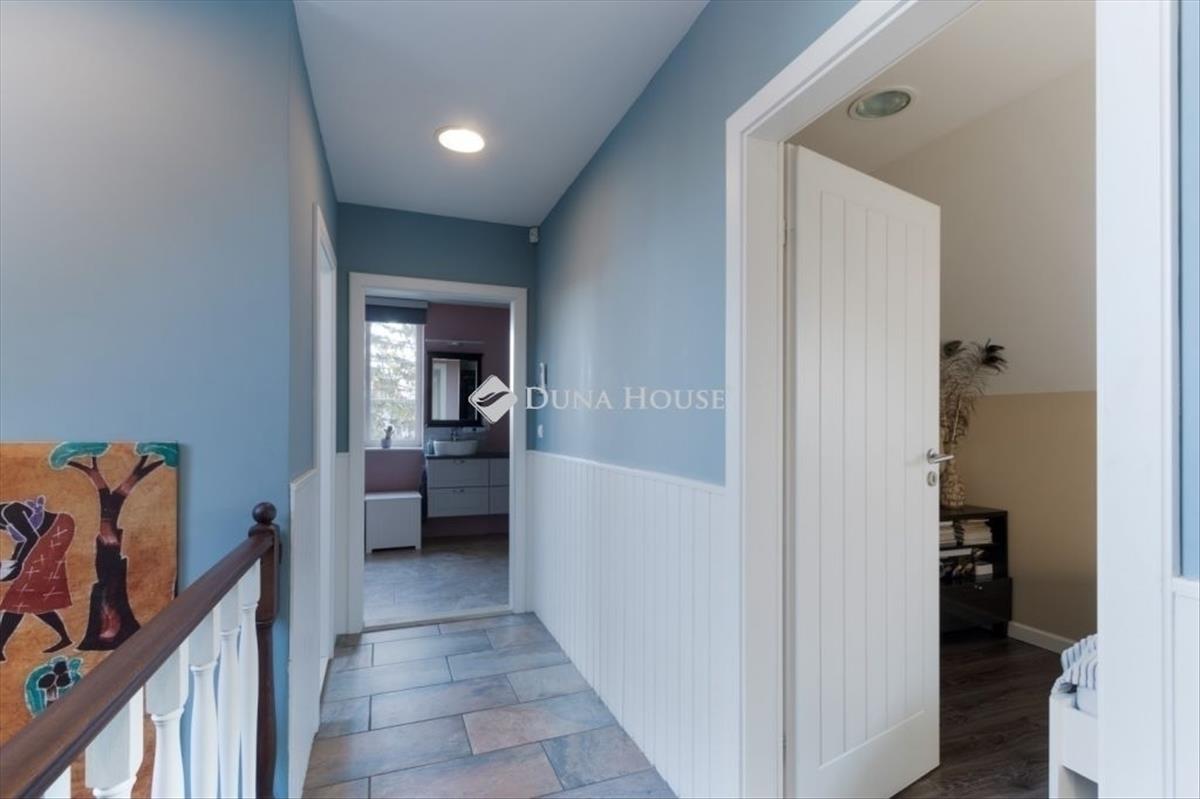 Az 540 m2-es telken lévő, elő-, oldal és hátsó kerttel, benne örökzöldekkel, gyümölcsfákkal ölelt, szintenként 93 m2-es ház 2012-ben épült és mindössze pár perc sétára található a Duna-parttól, csárdáktól és a Bp-Szob kerékpárúttól. Az impozáns, egyedi külső megjelenés és kiváló elosztás gondos tervezői munka eredménye, fő szempont az élhető terek kialakítása és a praktikus helykihasználás, melyhez magas minőségű anyagok felhasználása és kivitelezés társult. a szürke terméskő homlokzat, a zöld spaletták, a fehér ablakok, a tetőtér megformálása az angol vidéki táj varázslatos világát hozza el. a délnyugati fekvésű, körbe napozott ház a telek utcához közelebb eső részén található, földszinti, emeleti helyiségei, 20 m2-es, wpc burkolatos terasza a gondozott kertre tájoltak, tökéletes privát szférát nyújtanak az itt lakók számára!