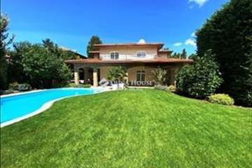 Az 1163 m2-es telken lévő, gondozott kerttel, örökzöldekkel, fákkal, medencével ölelt, 426 m2-es, 7 szobás ház 2013-ban nyerte el jelenlegi formáját. a kiváló elosztás gondos tervezői munka eredménye, fő szempont az élhető terek kialakítása és a praktikus helykihasználás, melyhez magas minőségű kivitelezés társult. a déli fekvésű, körbe napozott ház a telek utcától hátrébb eső részén található, földszinti, emeleti helyiségei, teraszai a szemnek gyönyörködtető hatalmas, ápolt kertre, a 12 méter hosszú medencére tájoltak. a telek fekvése, az épület elhelyezése kapcsán mind a kert, mind a ház tökéletes privát szférát nyújt az itt lakók számára! a közel 310 m2-es földszinti részből 100 m2 az árkádos, fedett terasz, mely közvetlen kapcsolatot biztosít a 91 m2-es nappali-étkező, a 20 m2-es konyha és a kert, a fűthető medence között, kiváló színtereket nyújtva a társasági, családi élet számára. a hatalmas nappali-étkezőt a kényelem, a jól megválasztott, színek, formák, anyagok jellemzik. a konyha sütő-főző szigettel, Miele konyhagépekkel, nagy felületű gránit pultokkal felszerelt. Északi oldala felé háztartási, gépészeti (kazán) helyiségek és egy 26 m2-es fitness terem van, mely akár szobaként, irodaként is használható, külön ajtó nyílik innen a hátsó kertbe és kis fürdő is kapcsolódik hozzá. Az épület fő bejáratai a keleti oldalon találhatók, a gyalogosan érkezők a fedett teraszon, előszobán, az autóval érkezők pedig a 2 állásos, 36 m2-es garázson keresztül juthatnak a nappali-étkezőbe. a garázshoz vezető térkő burkolat kifut az automata kapu bejáratig. a gyalogos bejárat mellett egy 12 m2-es vendégszoba is helyet kapott, külön zuhanyzóval, WC-vel, kézmosóval. a 190 m2-es emeleti szintre a nappali-étkezőből tudunk felmenni, kényelmes falépcsőn. 154 m2-es, 2, 50-es belmagasságú lakótér és 2 db nyitott terasz található itt, melyek a tágas közlekedő által szeparáltak. a déli oldal 32 m2-es, akár ketté is választható szobájához 18 m2-es, gyönyörű panorámás terasz, míg a nyugati oldal 23 m2-es szobájához gardrób is kapcsolódik. a lépcsőfeljárótól balra egy 27 m2-es, minden kényelemmel (masszázs kád, zuhany, 2 állásos mosdó, elektromos szauna) felszerelt fürdőszoba kapott helyet, de a keleti oldalon is van még egy 10 m-es fürdő, a mellette lévő 19 és 10 m2-es szobák igényeinek kielégítése céljából. a közlekedőből közvetlenül tudunk kijutni az északi/keleti oldalon lévő 19 m2-es teraszra. a 38-as külső tégla falaknak, monolit vasbeton födémszerkezetnek, a külső, belső hőszigeteléseknek, a nyílászáróknak, tömör fa beltéri ajtóknak, árkádos terasz kialakításnak köszönhetően a ház energetikailag korszerű, nyáron is kellemes hőmérsékletű, amelyet teljessé a légkondicionált helyiségek biztosítanak. Az ingatlan melegét korszerű szabályozással ellátott fűtési rendszer (Vitodens 200 kazán 300 l-es puffertartállyal) szolgáltatja, földszinten padlófűtéssel, emeleten radiátorokkal. a 60 m3-es, vízgépészettel ellátott medence igény szerint fűthető a kazán által. a garázsban nagy teljesítményű elektromos csatlakozó van kiépítve elektromos autó töltéséhez. a ház biztonságát távfelügyelethez bekötött riasztó garantálja. a gondozott növényzet öntözését automata locsolórendszer biztosítja. a kertben található még egy praktikus faház a kerti szerszámok tárolására, valamint egy fűthető üvegház is. Az ingatlan a meglévő bútorozottsággal, felszereltséggel eladó.