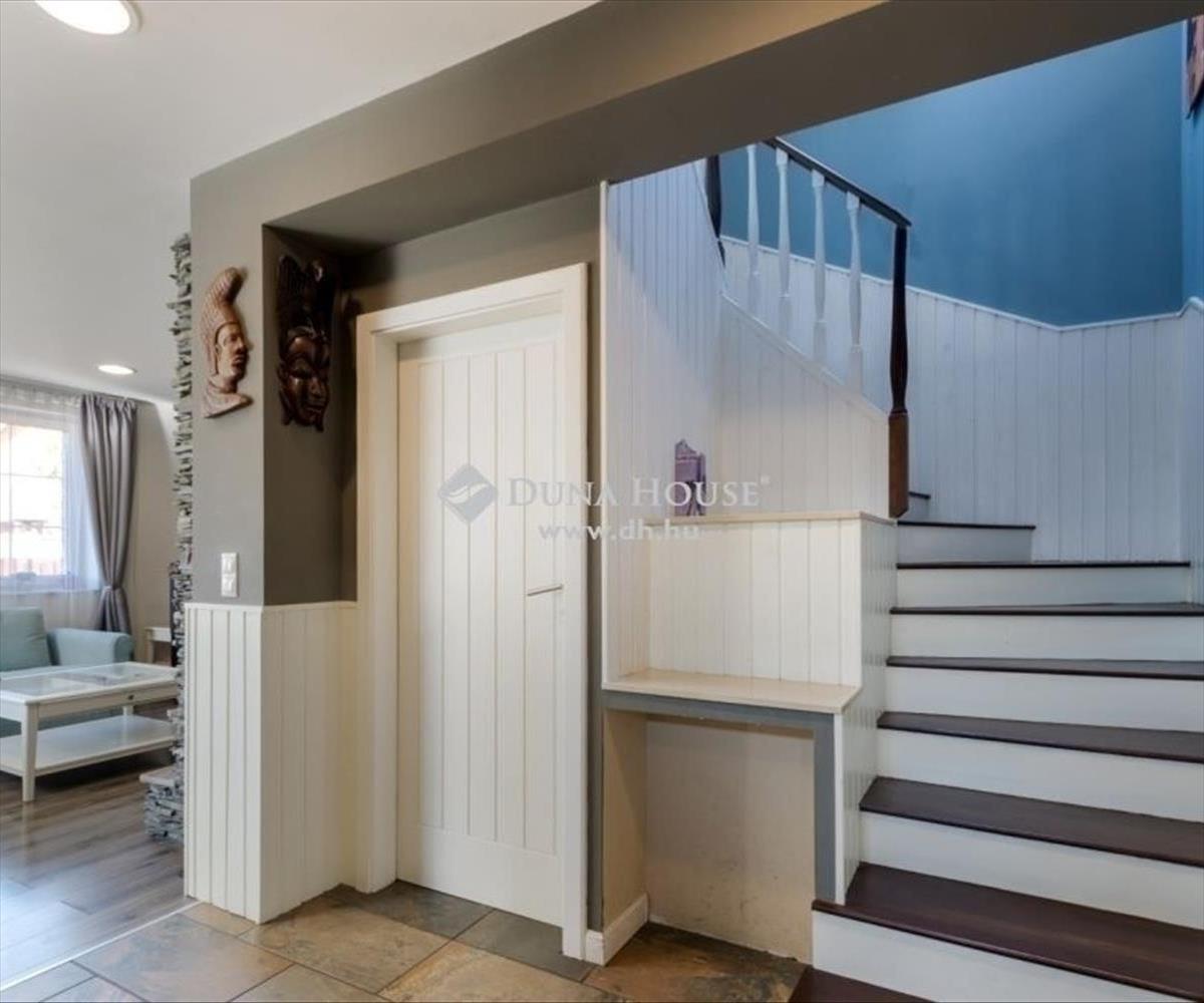 Angol stílusú, igényesen kivitelezett és berendezett, 2 szintes, 186 m2-es, 5 szobás családi ház Göd Dunához közeli, lakó-pihenő övezetében!Az 540 m2-es telken lévő, elő-, oldal és hátsó kerttel, benne örökzöldekkel, gyümölcsfákkal ölelt, szintenként 93 m2-es ház 2012-ben épült és mindössze pár perc sétára található a Duna-parttól, csárdáktól és a Bp-Szob kerékpárúttól. Az impozáns, egyedi külső megjelenés és kiváló elosztás gondos tervezői munka eredménye, fő szempont az élhető terek kialakítása és a praktikus helykihasználás, melyhez magas minőségű anyagok felhasználása és kivitelezés társult. a szürke terméskő homlokzat, a zöld spaletták, a fehér ablakok, a tetőtér megformálása az angol vidéki táj varázslatos világát hozza el. a délnyugati fekvésű, körbe napozott ház a telek utcához közelebb eső részén található, földszinti, emeleti helyiségei, 20 m2-es, wpc burkolatos terasza a gondozott kertre tájoltak, tökéletes privát szférát nyújtanak az itt lakók számára!