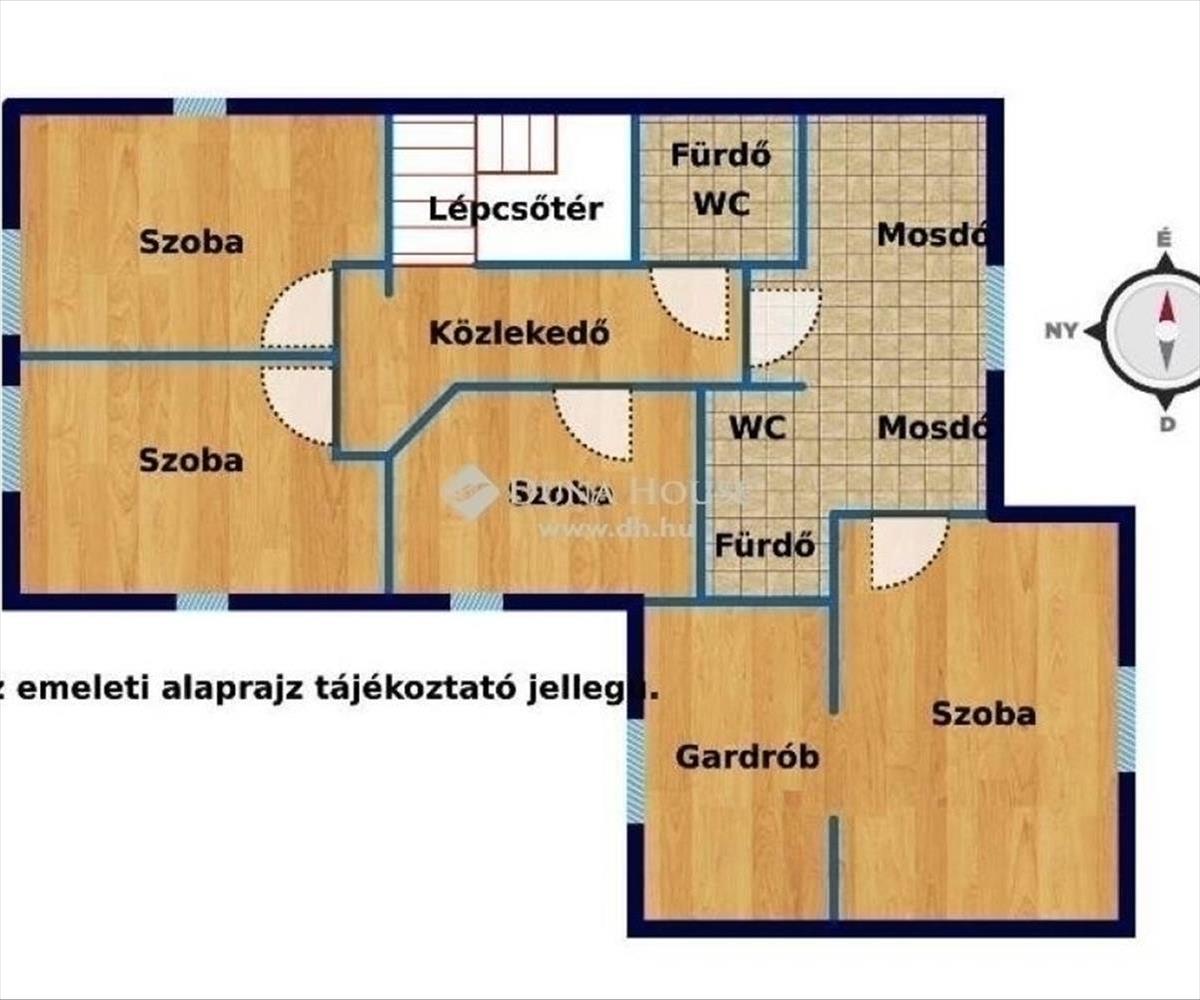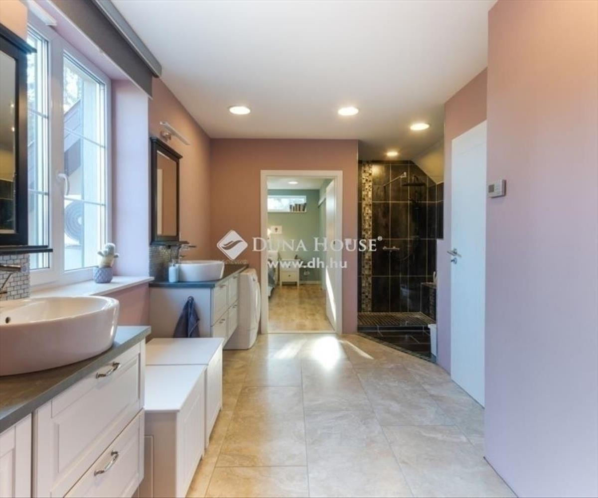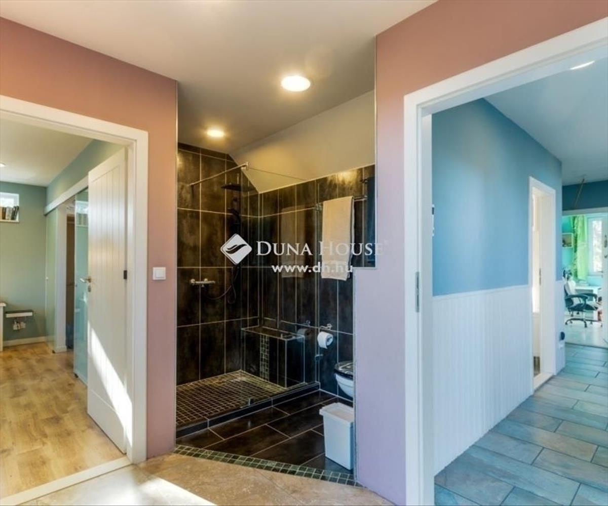 A házban nappali + 4 hálószoba, 3 fürdőszoba, 29 m2-es lakáskapcsolatos, fűthető garázs, továbbá tárolásra használható padlás van. a földszinti 64 m2-es lakótérben tud együtt lenni a család, a 24 m2-es, kiváló fényviszonyokkal és terméskő burkolatos, vízteres kandallóval rendelkező nappaliban, mely a nagyobb létszámú étkezések helyszíne is, vagy a 18 m2-es, teljesen felszerelt, gépesített konyha-étkezőben, melyhez egy kis kamra is tartozik és ahonnan szép időben a teraszra, a kertbe is kiléphetünk. Az előszobából nyílik a zuhanyzós fürdőszoba, egy kabátos gardrób, illetve közvetlenül mehetünk a garázsba, ahol a gépészet is helyet kapott. a nappalit és a konyha-étkezőt a közlekedő köti össze, a tereket kihasználva itt van még egy gardrób, innen tudunk szép, kényelmes lépcsőn felmenni az emeletre. Az emeleti 93 m2-en 4 szobát, 2 fürdőt találunk, melyek tágas közlekedőről nyílnak, kellő kényelmet, szeparáltságot biztosítanak egy több tagú család számára is. Különleges, apartmanos jellegű elhelyezést kínál a 18 m2-es szülői hálószoba, ahová a 15 m2-es szülői fürdőszobán keresztül juthatunk és amelyből nyílik még egy 9 m2-es, ablakos gardrób is. a 13, 12 és 9 m2-es szobák az ablakok révén szép világosak, beépített szekrények segítik a tárolást.