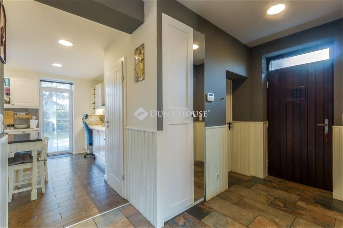 Angol stílusú, igényesen kivitelezett és berendezett, 2 szintes, 186 m2-es, 5 szobás családi ház Göd Dunához közeli, lakó-pihenő övezetében! Az 540 m2-es telken lévő, elő-, oldal és hátsó kerttel, benne örökzöldekkel, gyümölcsfákkal ölelt, szintenként 93 m2-es ház 2012-ben épült és mindössze pár perc sétára található a Duna-parttól, csárdáktól és a Bp-Szob kerékpárúttól. Az impozáns, egyedi külső megjelenés és kiváló elosztás gondos tervezői munka eredménye, fő szempont az élhető terek kialakítása és a praktikus helykihasználás, melyhez magas minőségű anyagok felhasználása és kivitelezés társult. a szürke terméskő homlokzat, a zöld spaletták, a fehér ablakok, a tetőtér megformálása az angol vidéki táj varázslatos világát hozza el. a délnyugati fekvésű, körbe napozott ház a telek utcához közelebb eső részén található, földszinti, emeleti helyiségei, 20 m2-es, wpc burkolatos terasza a gondozott kertre tájoltak, tökéletes privát szférát nyújtanak az itt lakók számára! a házban nappali + 4 hálószoba, 3 fürdőszoba, 29 m2-es lakáskapcsolatos, fűthető garázs, továbbá tárolásra használható padlás van. a földszinti 64 m2-es lakótérben tud együtt lenni a család, a 24 m2-es, kiváló fényviszonyokkal és terméskő burkolatos, vízteres kandallóval rendelkező nappaliban, mely a nagyobb létszámú étkezések helyszíne is, vagy a 18 m2-es, teljesen felszerelt, gépesített konyha-étkezőben, melyhez egy kis kamra is tartozik és ahonnan szép időben a teraszra, a kertbe is kiléphetünk. Az előszobából nyílik a zuhanyzós fürdőszoba, egy kabátos gardrób, illetve közvetlenül mehetünk a garázsba, ahol a gépészet is helyet kapott. a nappalit és a konyha-étkezőt a közlekedő köti össze, a tereket kihasználva itt van még egy gardrób, innen tudunk szép, kényelmes lépcsőn felmenni az emeletre. Az emeleti 93 m2-en 4 szobát, 2 fürdőt találunk, melyek tágas közlekedőről nyílnak, kellő kényelmet, szeparáltságot biztosítanak egy több tagú család számára is. Különleges, apartmanos jellegű elhelyezést kínál a 18 m2-es szülői hálószoba, ahová a 15 m2-es szülői fürdőszobán keresztül juthatunk és amelyből nyílik még egy 9 m2-es, ablakos gardrób is. a 13, 12 és 9 m2-es szobák az ablakok révén szép világosak, beépített szekrények segítik a tárolást. a lakótérben nincsenek fűtőtestek. a fűtés hőszivattyúról vagy vízteres kandallóról megoldott, emellett hűtő-fűtő inverteres klíma is kiválthatja a hőmérséklet szabályzást. a ház jól szigetelt, 10 cm grafitos szigeteléssel Porotherm téglából épült, aljzat és födém szigeteléssel ellátott. a hőleadás padlófűtéssel történik, valamint a konyhai részen falfűtéssel is. Minden helyiség külön termosztátról szabályozható. a garázs szintén fűthető. Az ablakok 7 légkamrás három rétegű üvegből készültek a maximális komfortért. a tetőre napelem került, aminek kapacitása 5 kw. Fúrt kút, automata öntöző rendszer kiépítve. Elektromos szigetelt garázskapu, automata kapu, riasztó és kamera rendszer telepítve van. a kert utca felőli oldala térkővel burkolt, ahol több gépjármű is parkolhat kerítésen belül. a hátsó kertben található egy téglából épült csónak tároló, amibe minden hobbi és kerti eszköz befér. Budapesti vagy Pest-megyei ingatlan beszámítására, amennyiben az megfelelő lehet, a vételár ötven százalékáig lehetőség van. További kérdés esetén, vagy amennyiben megtekintené az ingatlant, kérem keressen bizalommal.