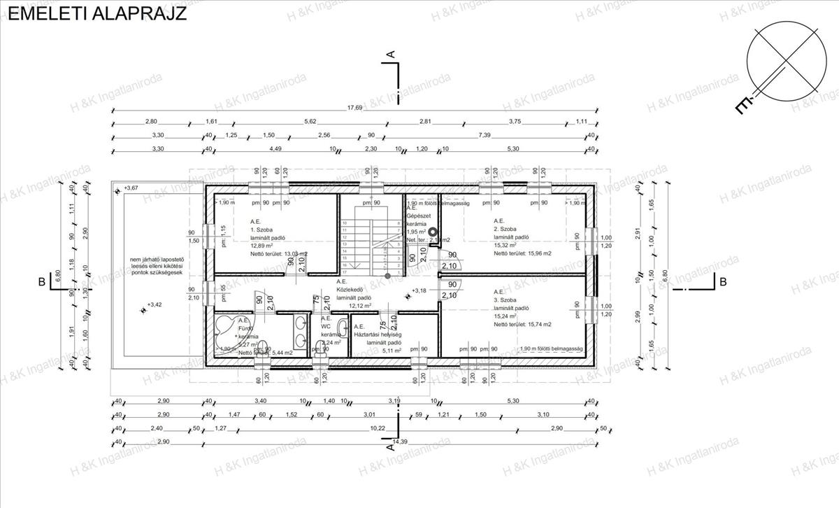 Az ingatlan belső kialakítása a funkcionalitás és a kényelmes élettér biztosítását szolgálja.