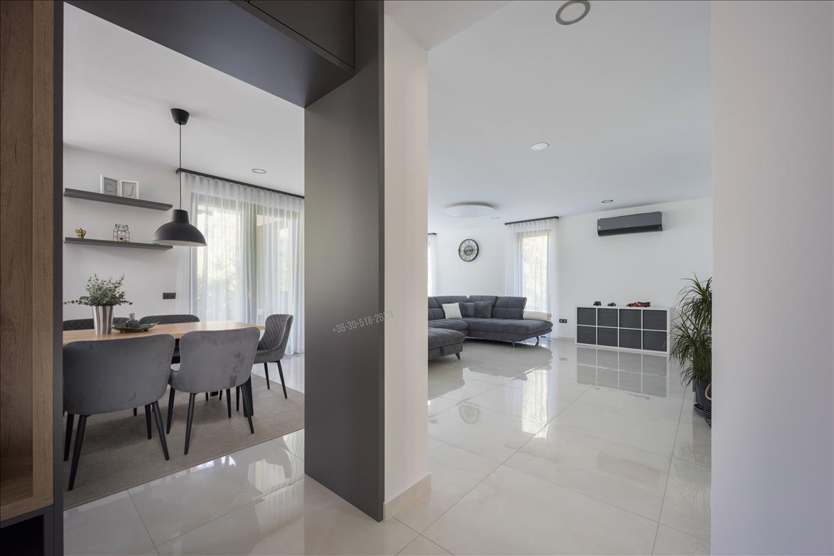 Az épület műszaki kivitelezése a jelen kor legmagasabb minőségi szintjét tükrözi. 30 Cm-es Porotherm X-Therm okostéglából készült, 15 cm-es hőszigeteléssel, melyet elegáns travertin kőburkolat tesz még exkluzívabbá. Az otthon komfortját kondenzációs gázkazán, padlófűtés és radiátorok, valamint egyetlen kültéri egységgel működő, összesen 4 db lg Dark klíma biztosítja. a melegvíz-ellátást 200 literes indirekt tároló, a víz minőségét professzionális vízlágyító rendszer garantálja. a háromrétegű műanyag nyílászárók rejtett tokos, elektromos alumínium redőnyökkel és szúnyoghálóval felszerelve érkeztek, a tetőt cserép fedi. Az ingatlan teljes körű okosotthon megoldásokkal és kamerarendszerrel is rendelkezik.