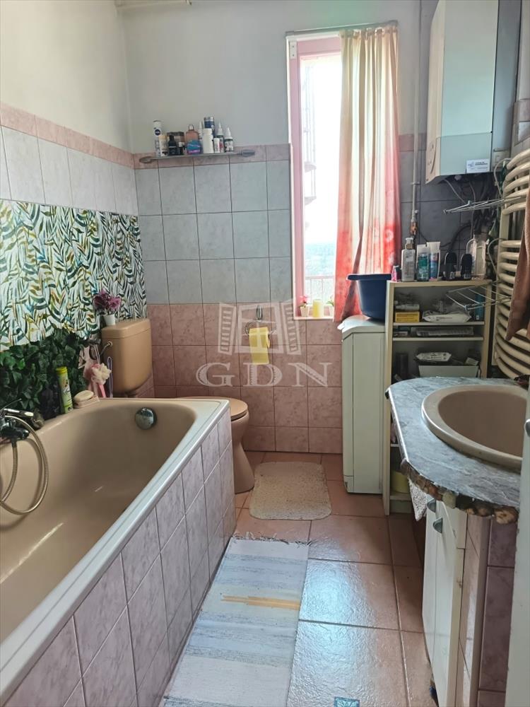 A bejárati ajtón át az előtérbe, majd az amerikai konyhás nappaliba érkezünk, amelyből nyílik a fürdőszoba. a fürdőszoba világos, ablakos.