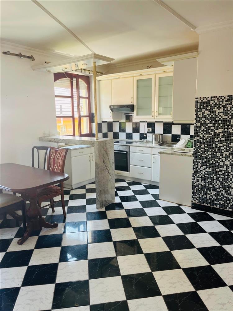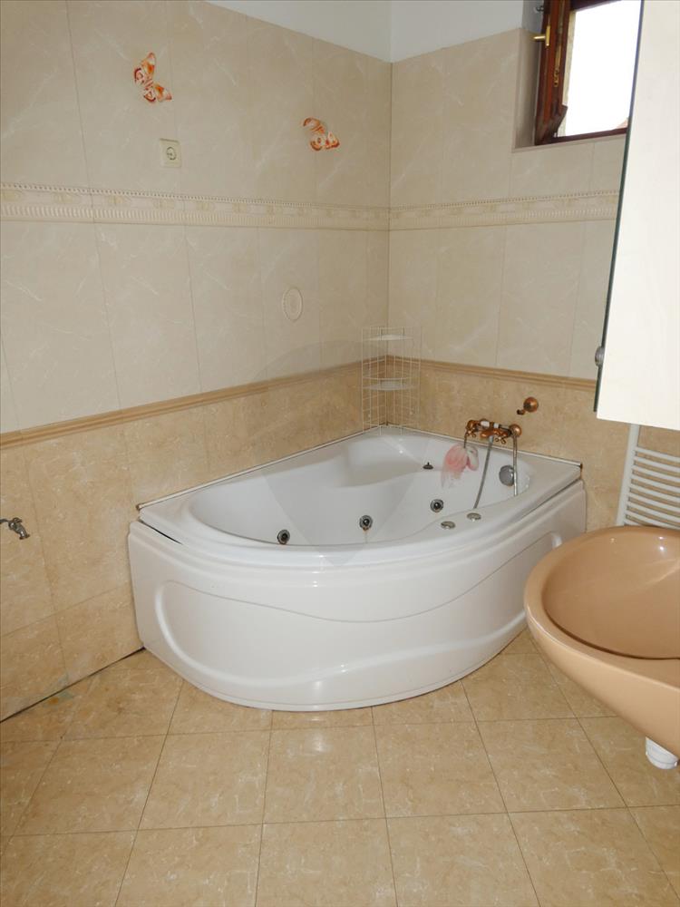 A telken lévő két épület közül a korábban, 1984-ben épült ház háromszintes, összesen 240 m² alapterületű. a földszint 60 m²-es, itt kapott helyet egy tágas amerikai konyhás nappali, a lépcsőház és a terasz. Az első emelet 90 m²-es, ahol három hálószoba, egy kádas fürdőszoba és egy erkély található. a második szint ugyanezzel az elrendezéssel alakítható ki, ám ez a rész jelenleg befejezetlen állapotban van. Az erkélyről és a felsőbb szintekről lenyűgöző panoráma nyílik a környékre.