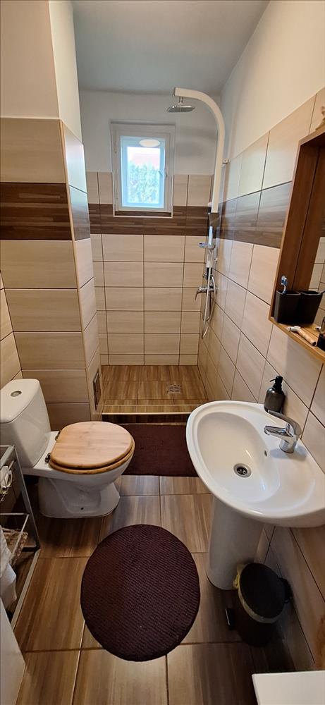 A kisház frissen festett, folyamatosan karbantartott, szép állapotú (új villanyvezetékek, burkolatok). Elosztása: előszoba, nyári konyha/szoba, mosókonyha, garázs/tároló.