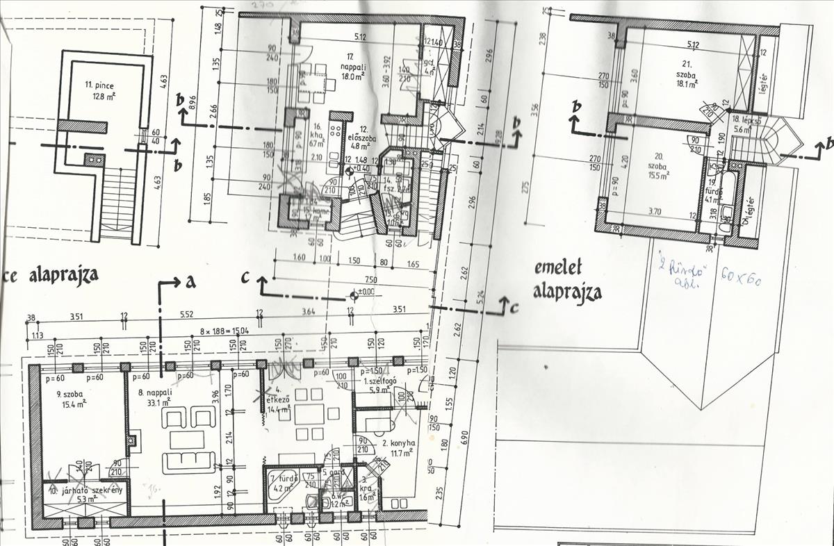 Az épületek alatt egy-egy pince is van, a 258m2-es ház alatti tárolóval ellátott, nagyméretű pincében egy medence is lett tervezve, de a megépítésére már nem került sor.
