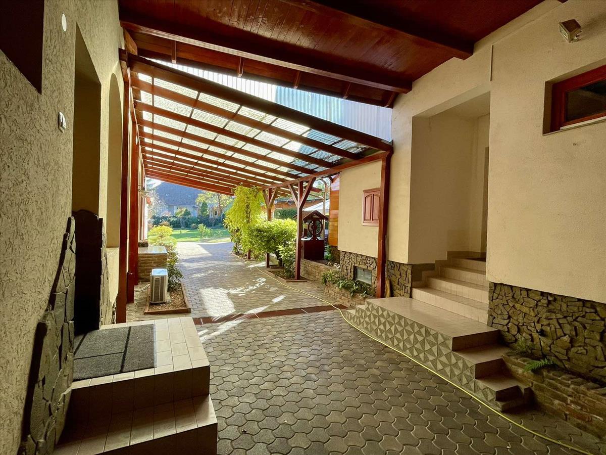 A telek hátsó részében kialakított nagy fedett tároló, akár egy plusz garázsnak is átépíthető.