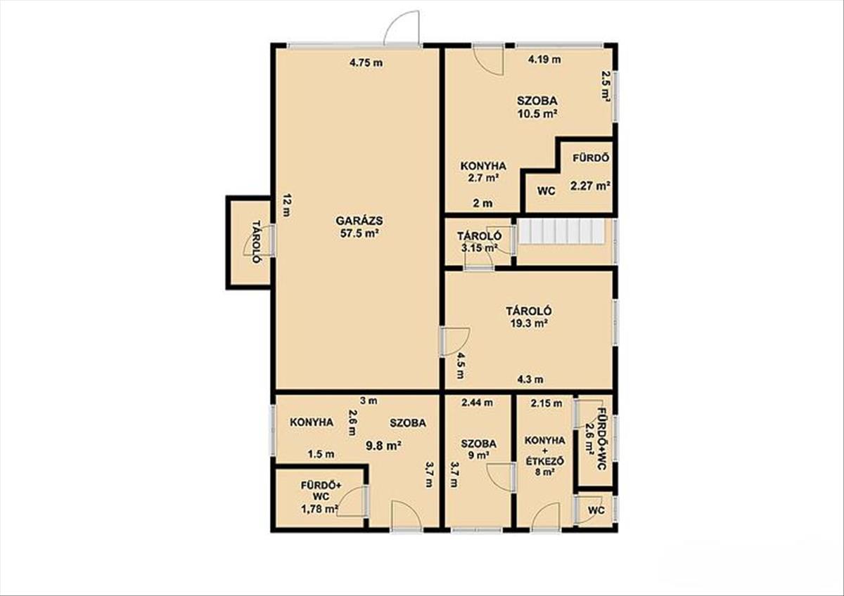 Külön tárolóhelyiségek és gépészeti helyiség