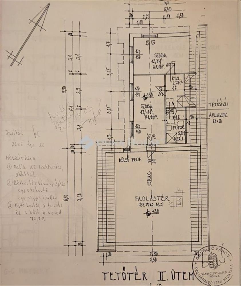 egy 2003-ban épült, gáz cirkó és kandalló fűtéses, 102 millió forintos vételárú, tégla építésű, tetőtér beépítésű, 146 m2-es, 4 és fél szobás családi házat.