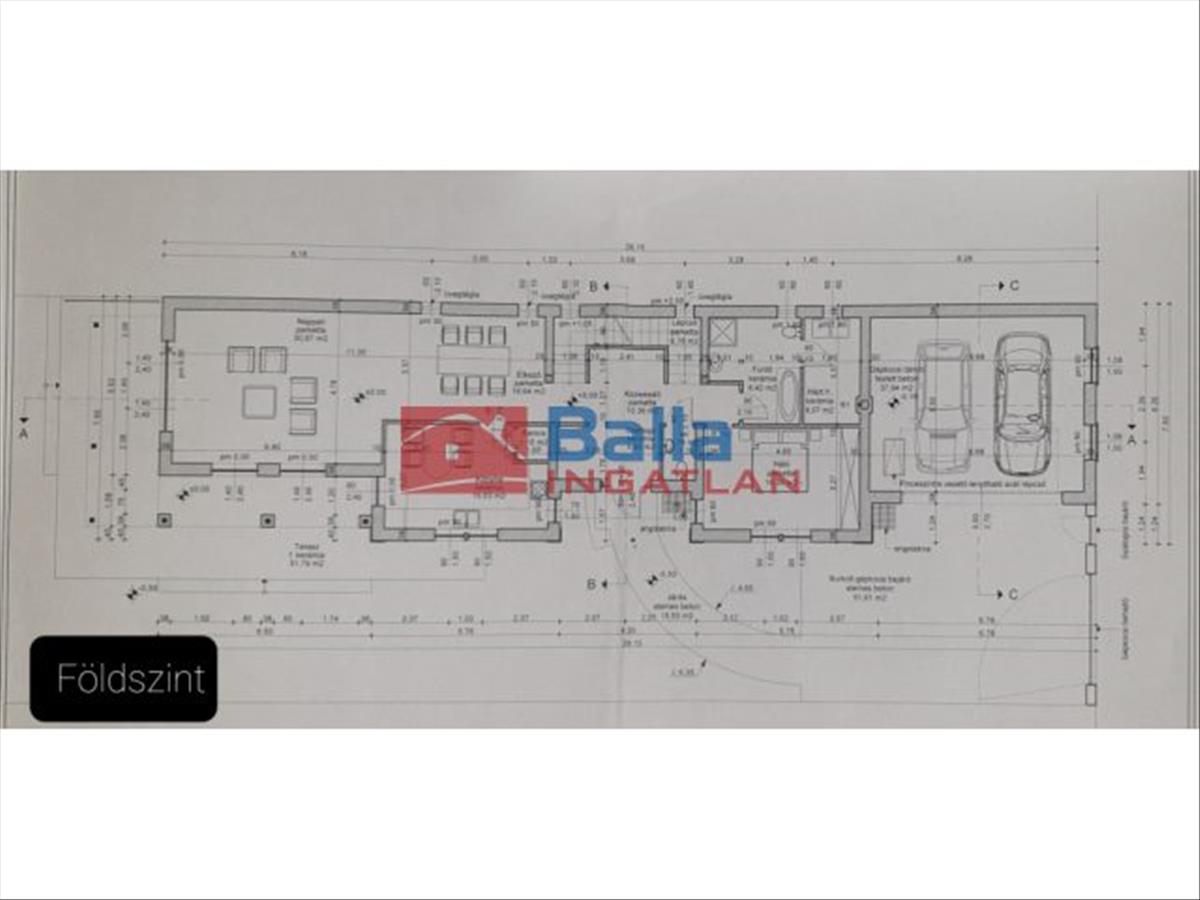 • Földszint (140 m²): nappali, étkező, konyha, háló, fürdő, vendég-Wc, teraszkapcsolat, 2 autós garázs szekcionált kapuval + elektromos kapu