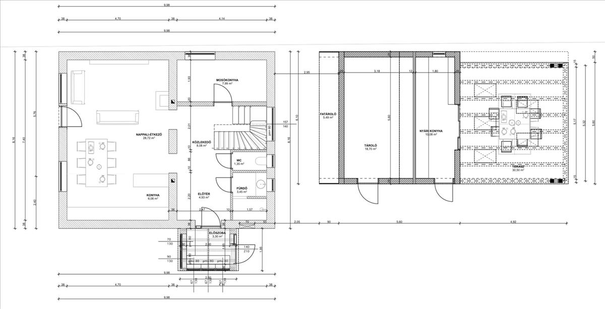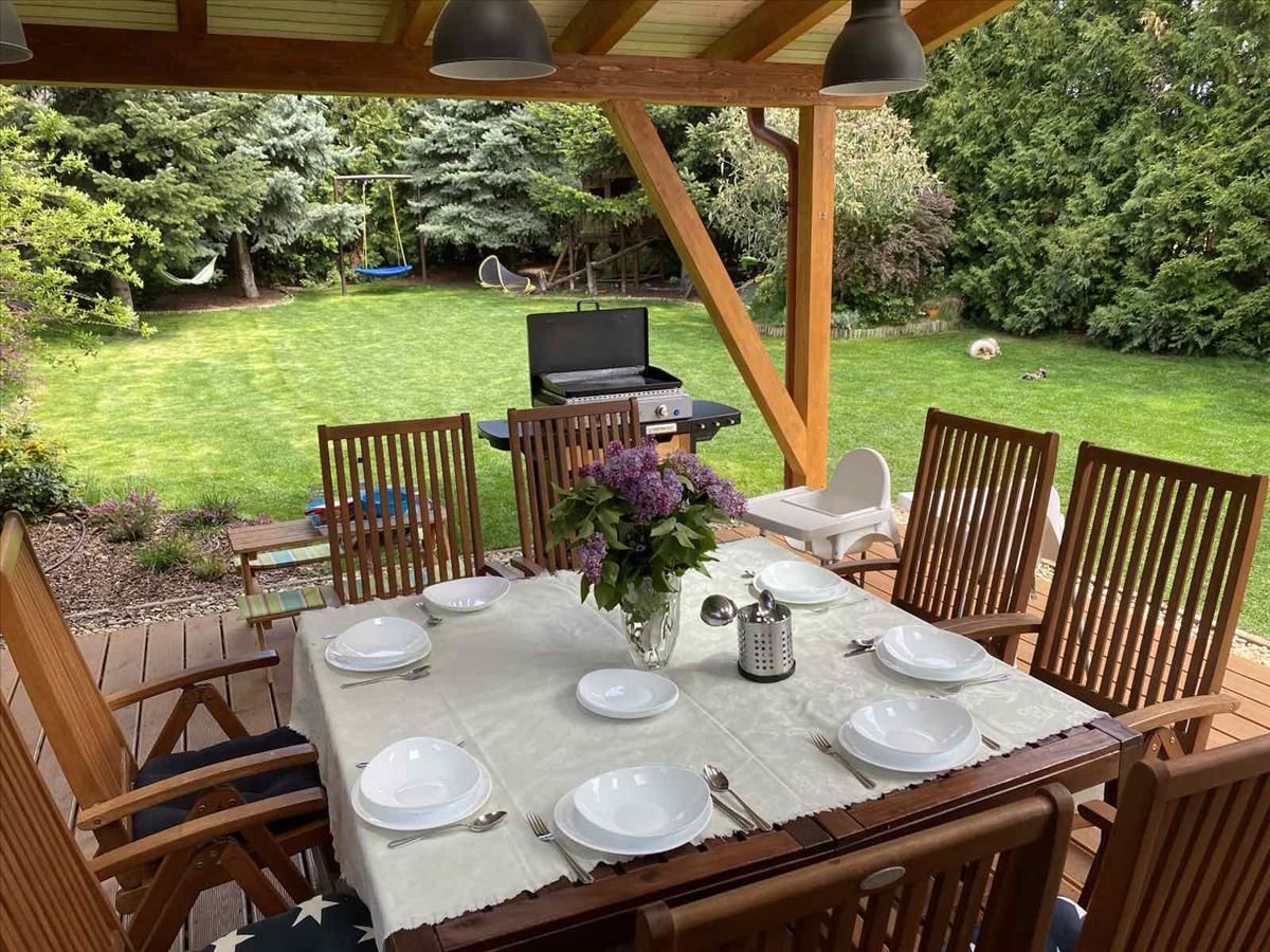 - családi összejövetelekhez kiválóan alkalmas, 30nm-es fedett, kertkapcsolatos terasz,