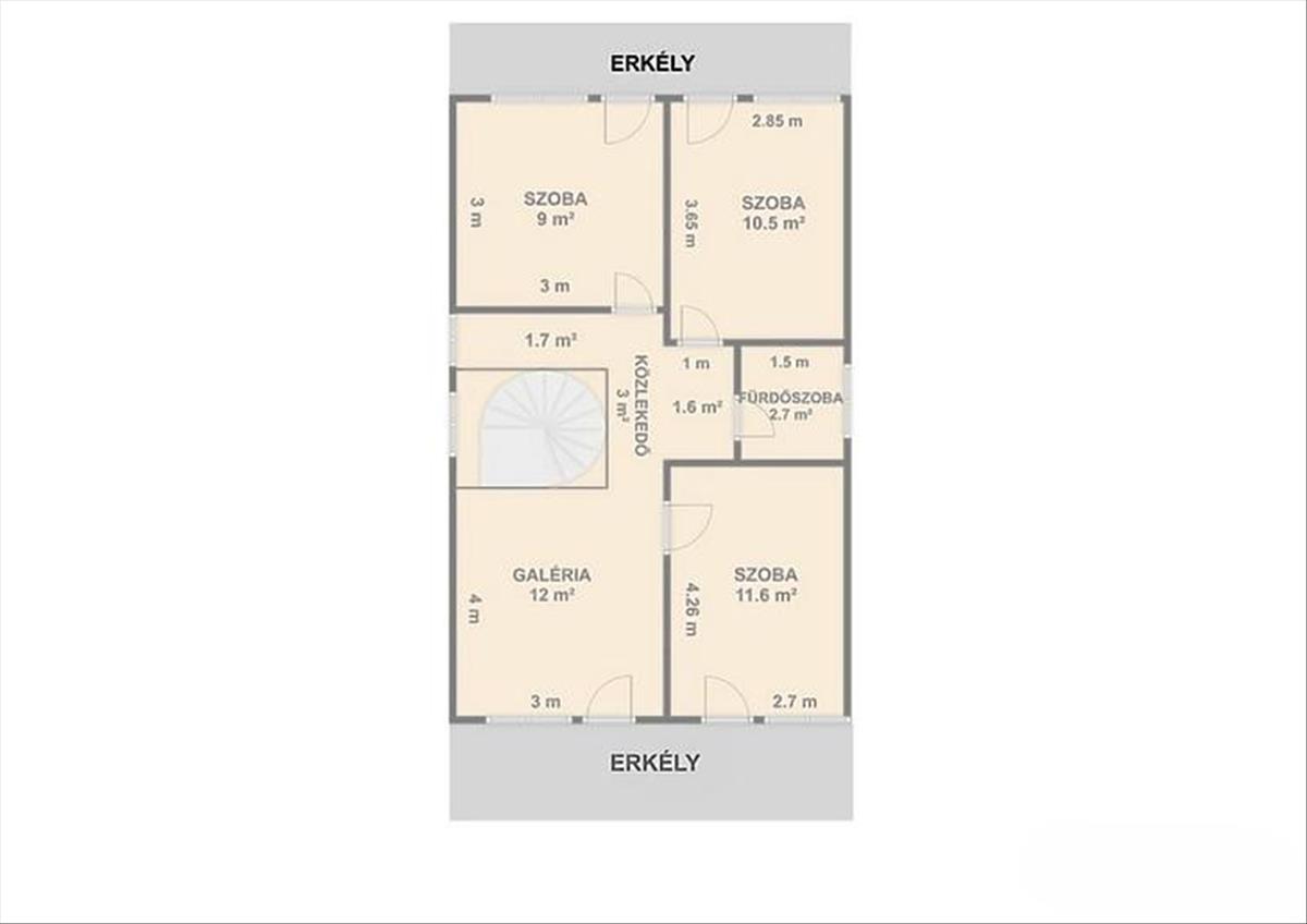 3 szoba, fürdőszoba + mellékhelyiség, galéria, 2 darab erkély.