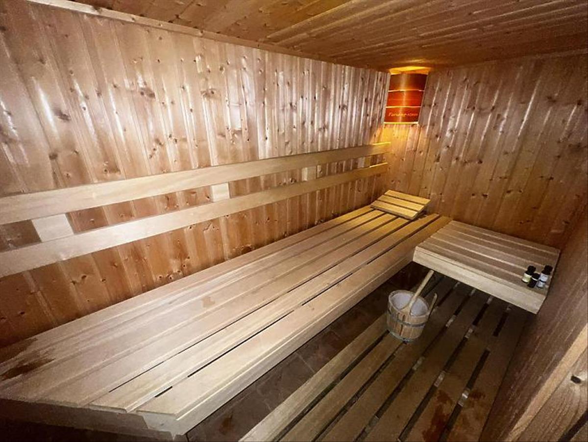 A hátsó udvaron medence, félszuterén szinten szauna található.