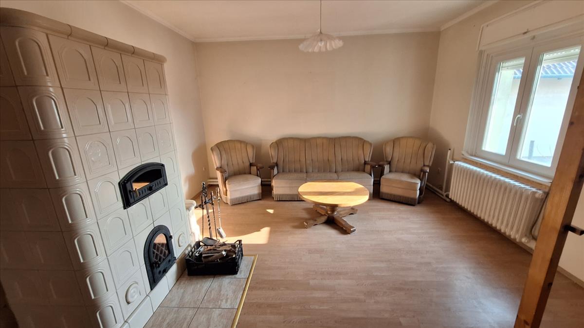 - Fűtés: gázkazán radiátoros hőleadással + cserépkályha.
