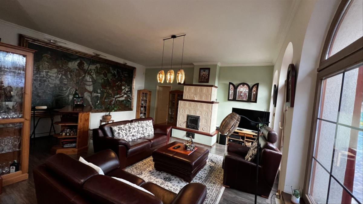 Riasztóval klímával elektromos kapuval segíti lakói kényelmét. a j kandalló pedig a nappali dísze.