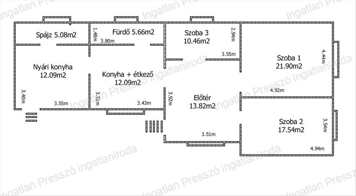 - az ingatlan egyszintes, praktikusan kialakított belső elrendezés, külön nyíló komfortos hálószobák