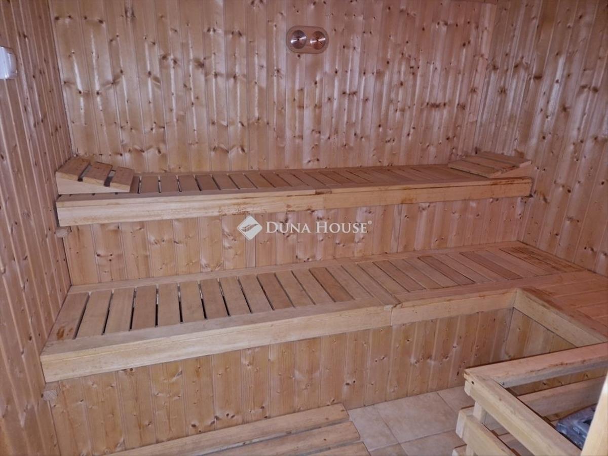 Hűsöljön a 30 m2-es medence partján a dús zöld növényzettel körbevett privát kertben, majd szaunázzon az alsó szinten található SZAUNÁBAN.