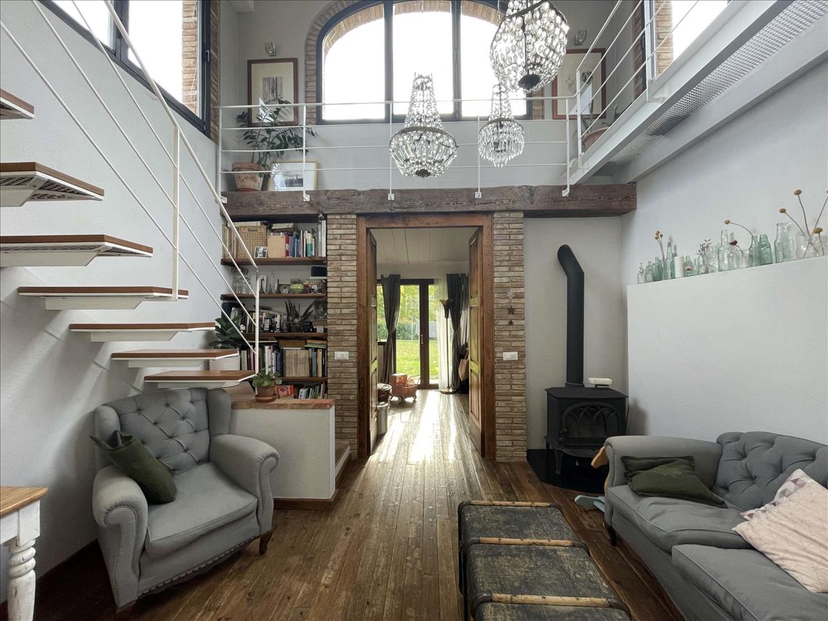 Első emelet: a nappali nagy kandallóval, amelyet visszanyert gerendákból építettek, és azonos mennyezettel; a gerendák és a terrakotta tégla teljesen felújítottak. Ezt a szobát külső lépcsőn keresztül is megközelítheted, és ez a főbejárat. Ugyanazon az emeleten a fő fürdőszoba, rendkívül nagy káddal és zuhannyal, a gardrób, egy hármas hálószoba, egy dupla hálószoba terasszal és egy egyágyas hálószoba található. Ezen a szinten van a kazánház. Az épület fűtése LPG-vel történik, és van egy albérlő.