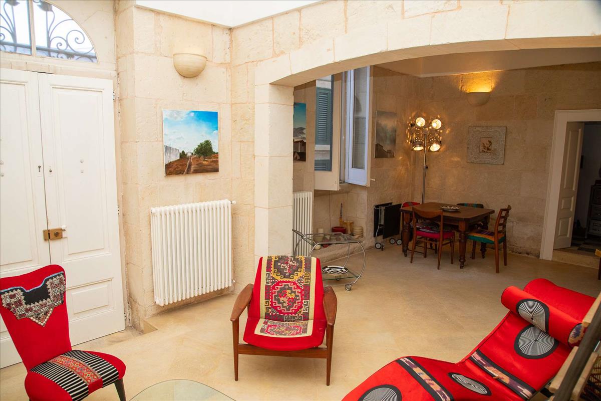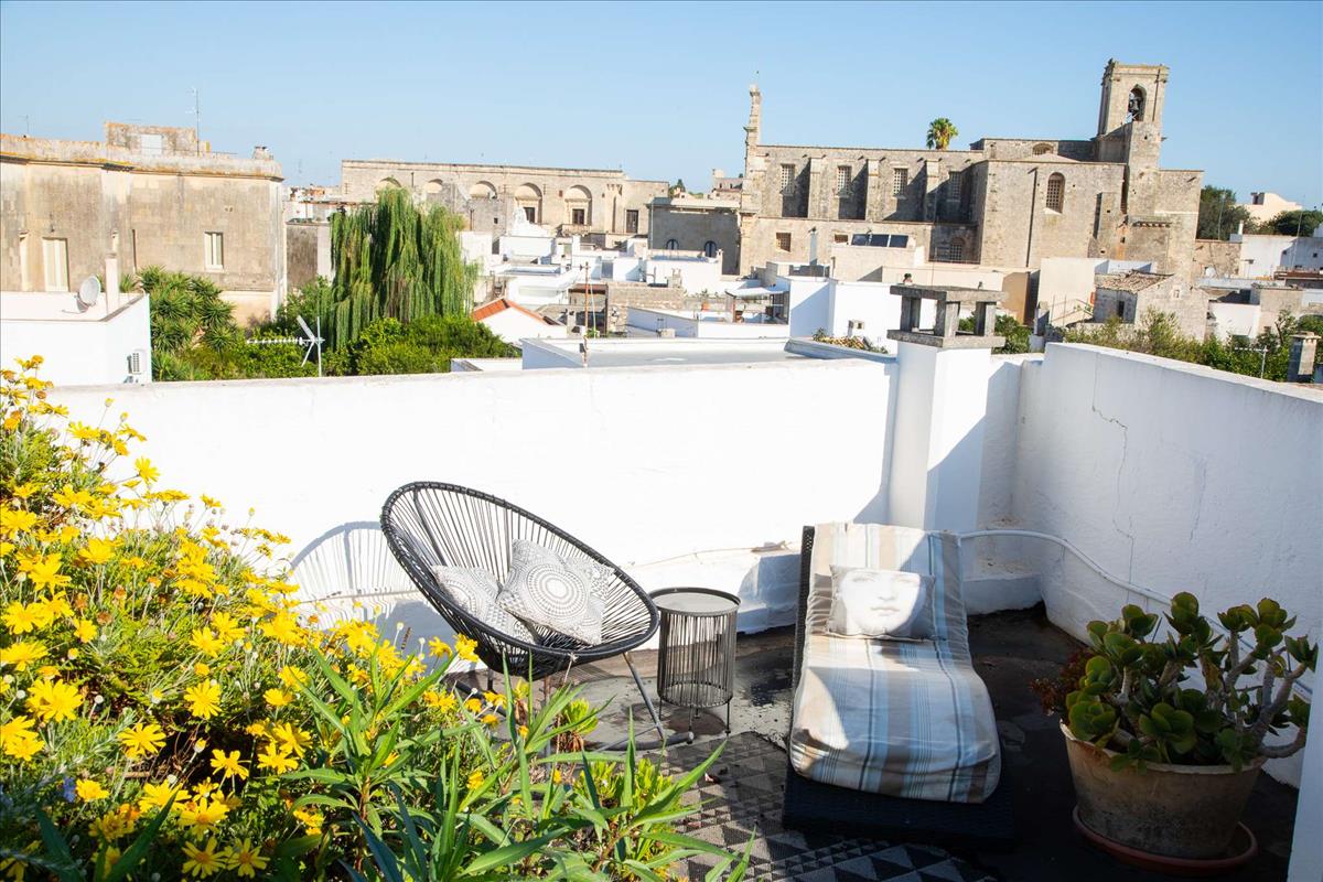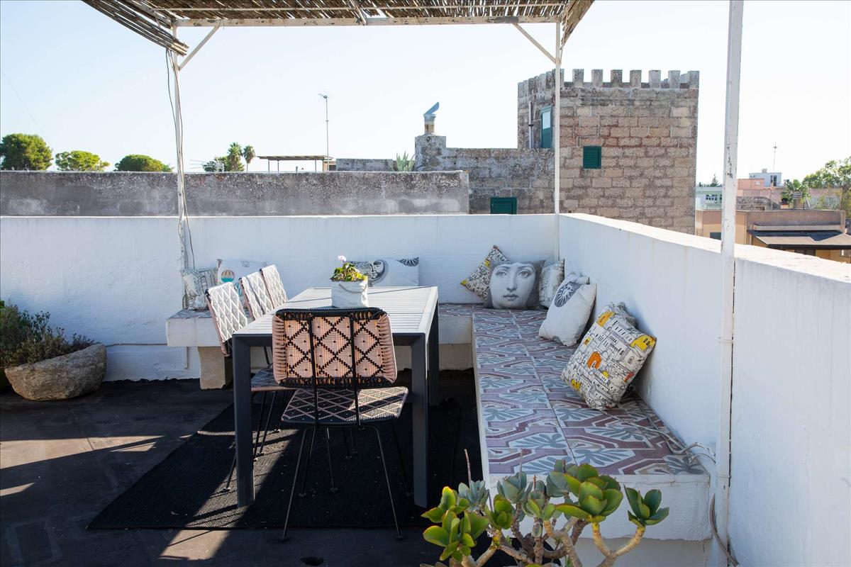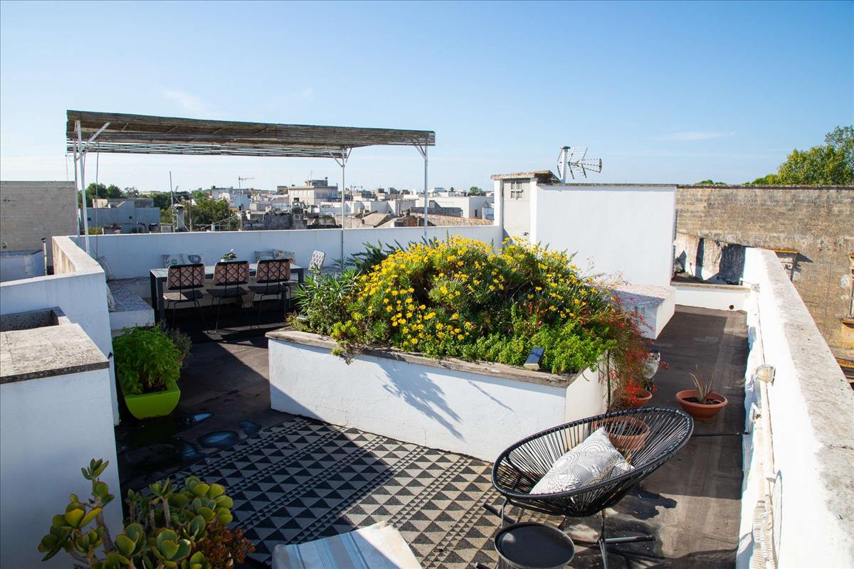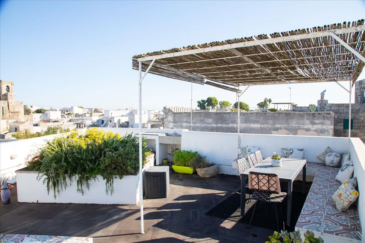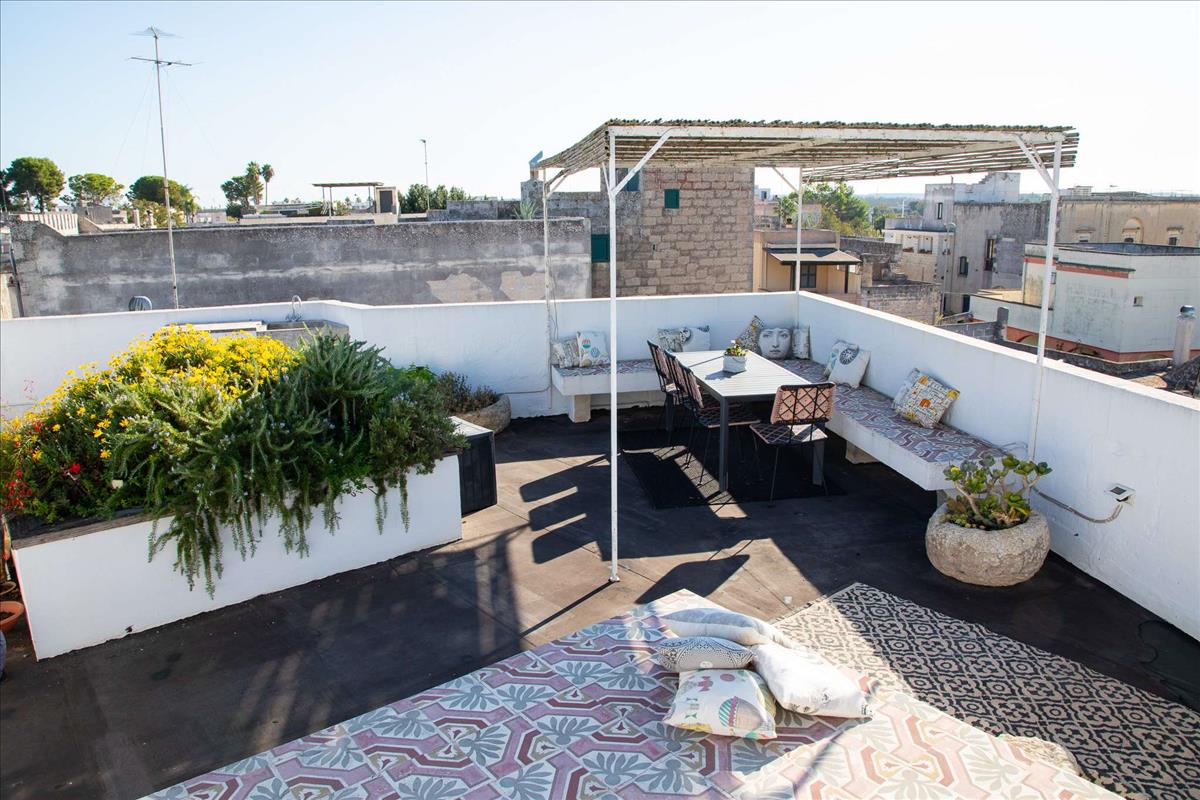 Tágas, 2–3 hálószobás otthon privát tetőterasszal és panorámás kilátással. Csendes lakóutca a bájos Muro Leccese városában. Csillagboltozatú mennyezet és eredeti csempézett padló 161 m² belső területtel. Kiváló kibocsátási potenciál. Otranto 19 km, 20 perc alatt. Lecce 26 km, 30 perc alatt. Torre dell'Orso és homokos strandok 30 km, 30 perc alatt. Brindisi repülőtere 83 km, 1 óra alatt.Rendkívül felújított városháza-fészer Muro Leccese bájos történelmi városában. Ez a lenyűgöző ingatlan zökkenőmentesen ötvözi a modern kényelmet az időtlen eleganciával, így tökéletes menedék azok számára, akik Salento festői régiójában eredeti életmódot keresnek. Csillagboltozatú mennyezet, eredeti kőfalak és gyönyörűen csempézett padló adják meg a karaktert és a melegséget az egész otthonban, így egy csábító légkört teremtve, amely egyszerre elegáns és otthonos. Földszint: A földszinten egy világos nappali és egy hangulatos étkező vár rád, így ideális a barátok és a család fogadására. Egy külön szoba sokoldalú tévés társalgóként szolgál, amely könnyen vendégszobává vagy otthoni irodává alakítható. A kis, de funkcionális konyha modern gáztűzhellyel és kamrával rendelkezik.