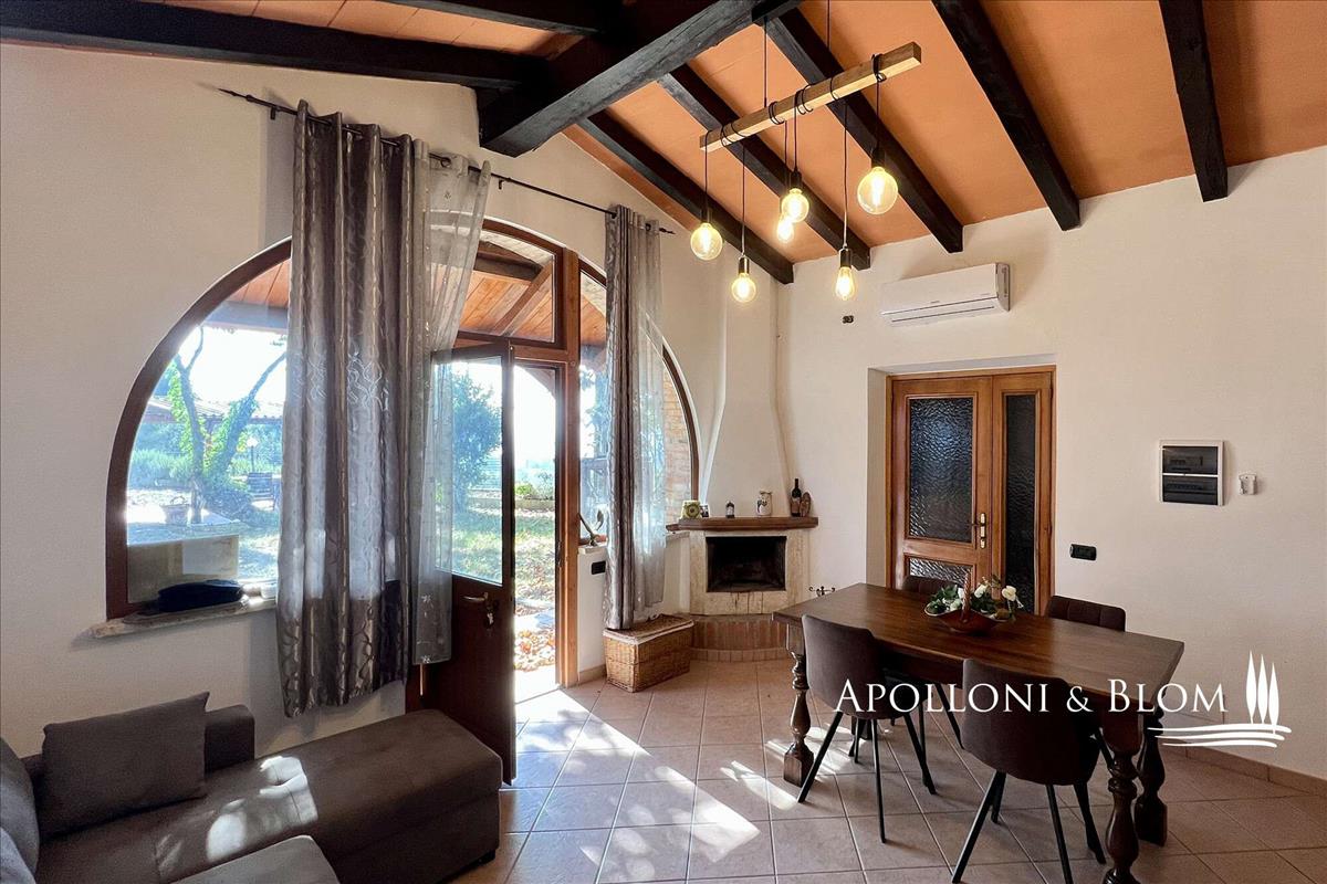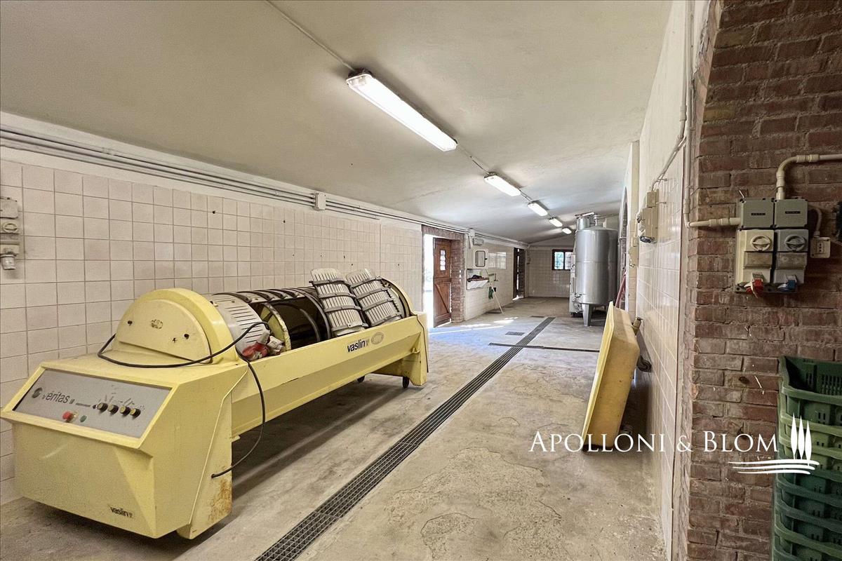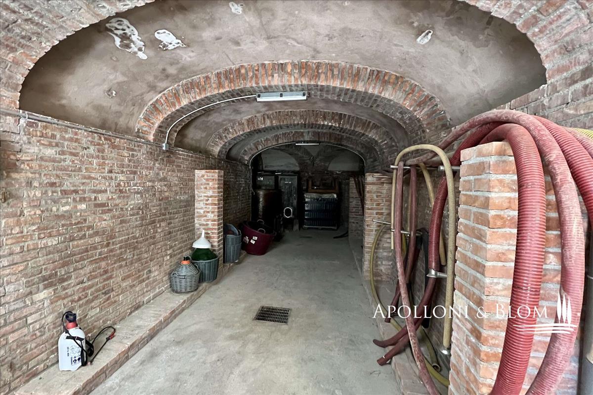 Típus: 15 acre / 6.1 Ha organikus farm szőlőültetvényekkel, olajfaligetekkel, parkosított kerttel, beleértve a 942 mq / 10139 m2 parkosított épületeket, melyekben 280 m2 m / 3013 sq ft kétemeletes vidéki villa van porticóval, vendégház, farm mellékletek, kétszintes pince földalatti barlangokkal.
