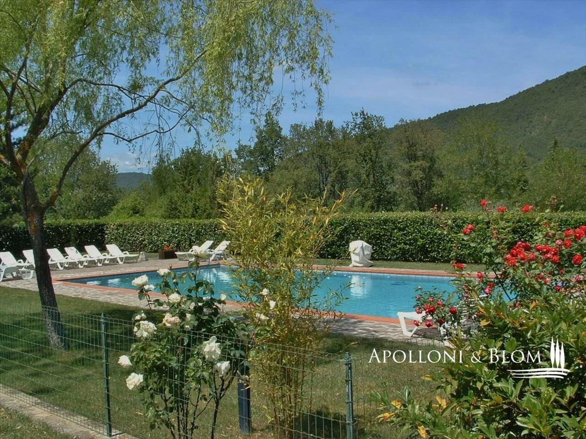 Organikusan kezelt, 20 hektáros / 49 hektáros birtok, amelyhez egy 1800-as években épült kastély, három vidéki vendégház, kert és medence tartozik, eladó Toszkánában, Arezzo északkeleti részén.