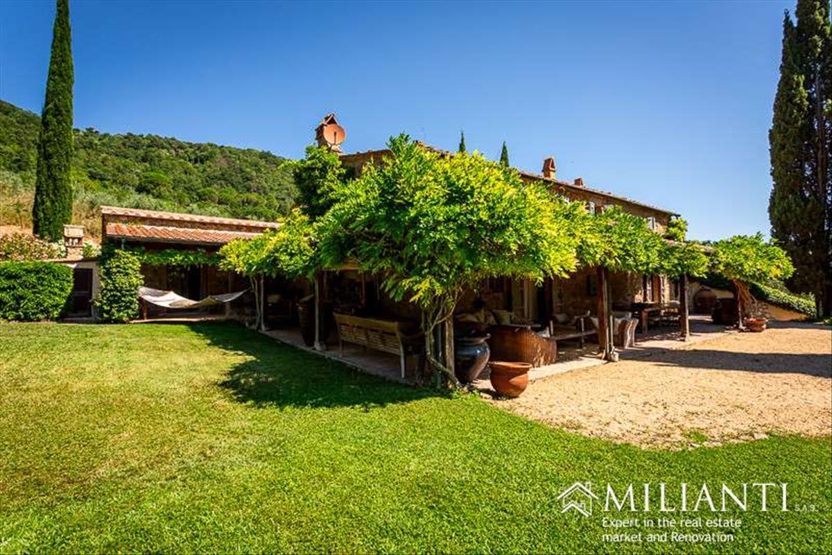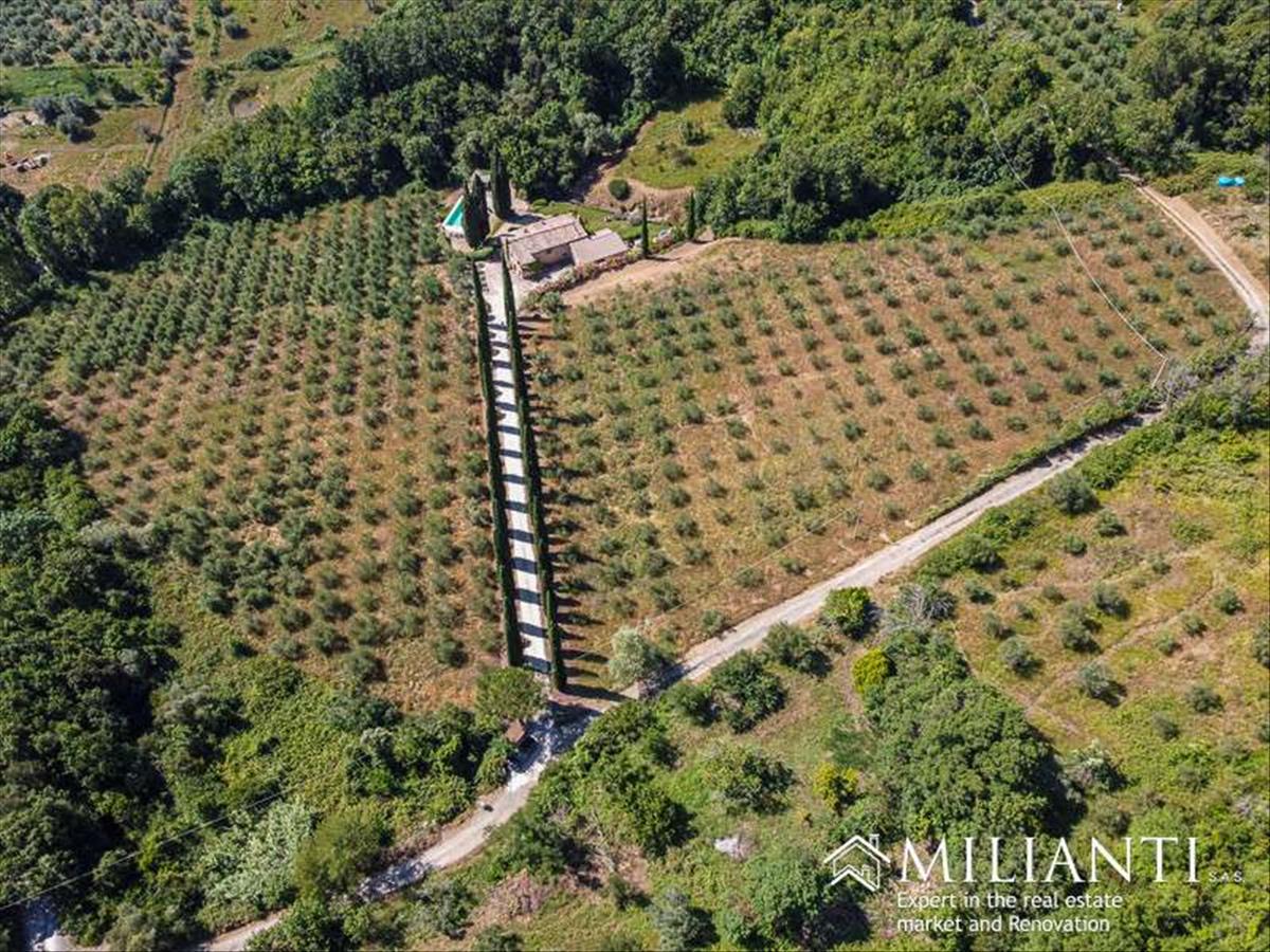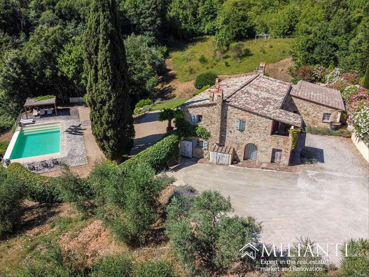 Montecatiniben, a Val di Cecina területén található autentikus parasztházat kínálunk, teljesen elmerülve az érintetlen vidéken, panorámás úszómedencével és 5 hektár földdel, hatalmas olajfaágakkal.