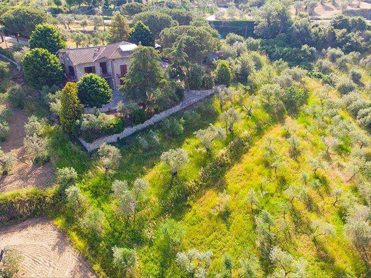 Fenséges helyzetben található, panorámás kilátással Cortona történelmi városára, az ingatlan körül 2 hektár föld, egy produktív olajfaültetvény és fenséges centúriák találhatók.