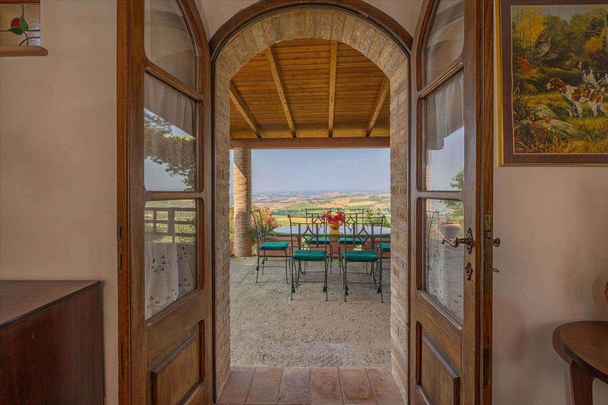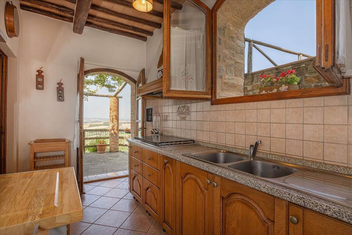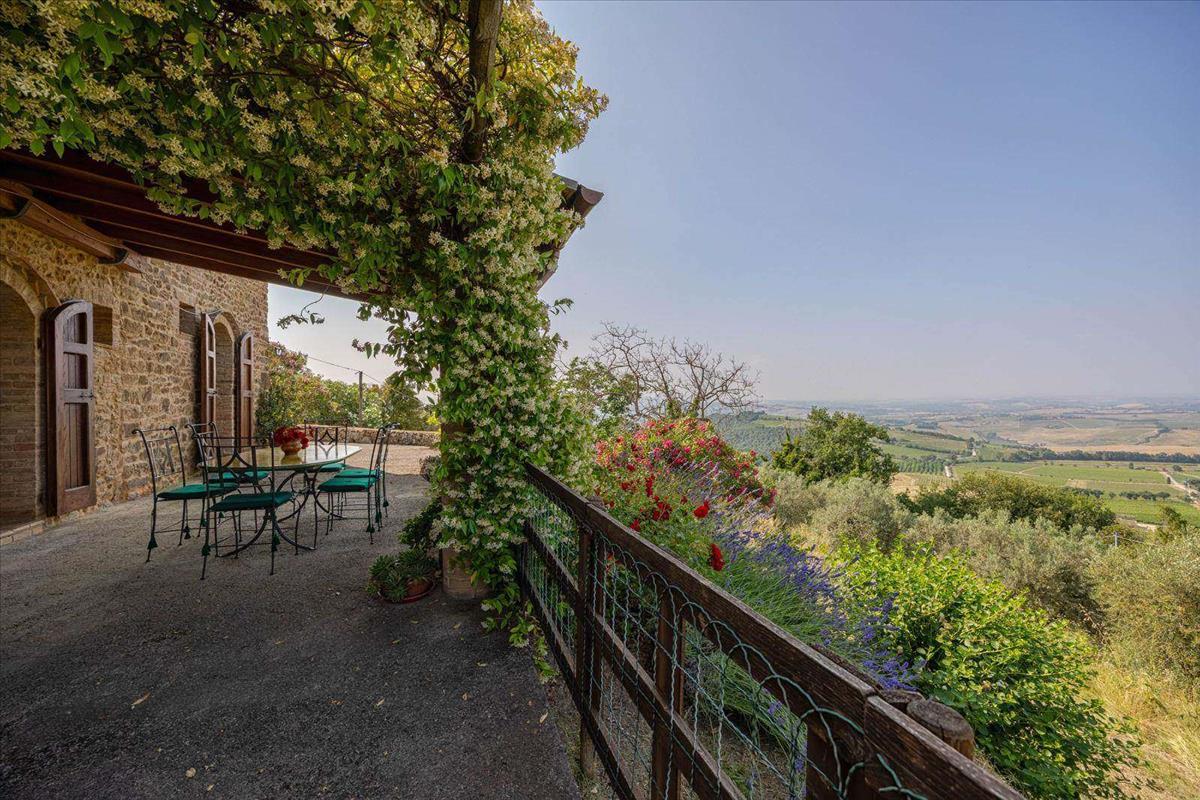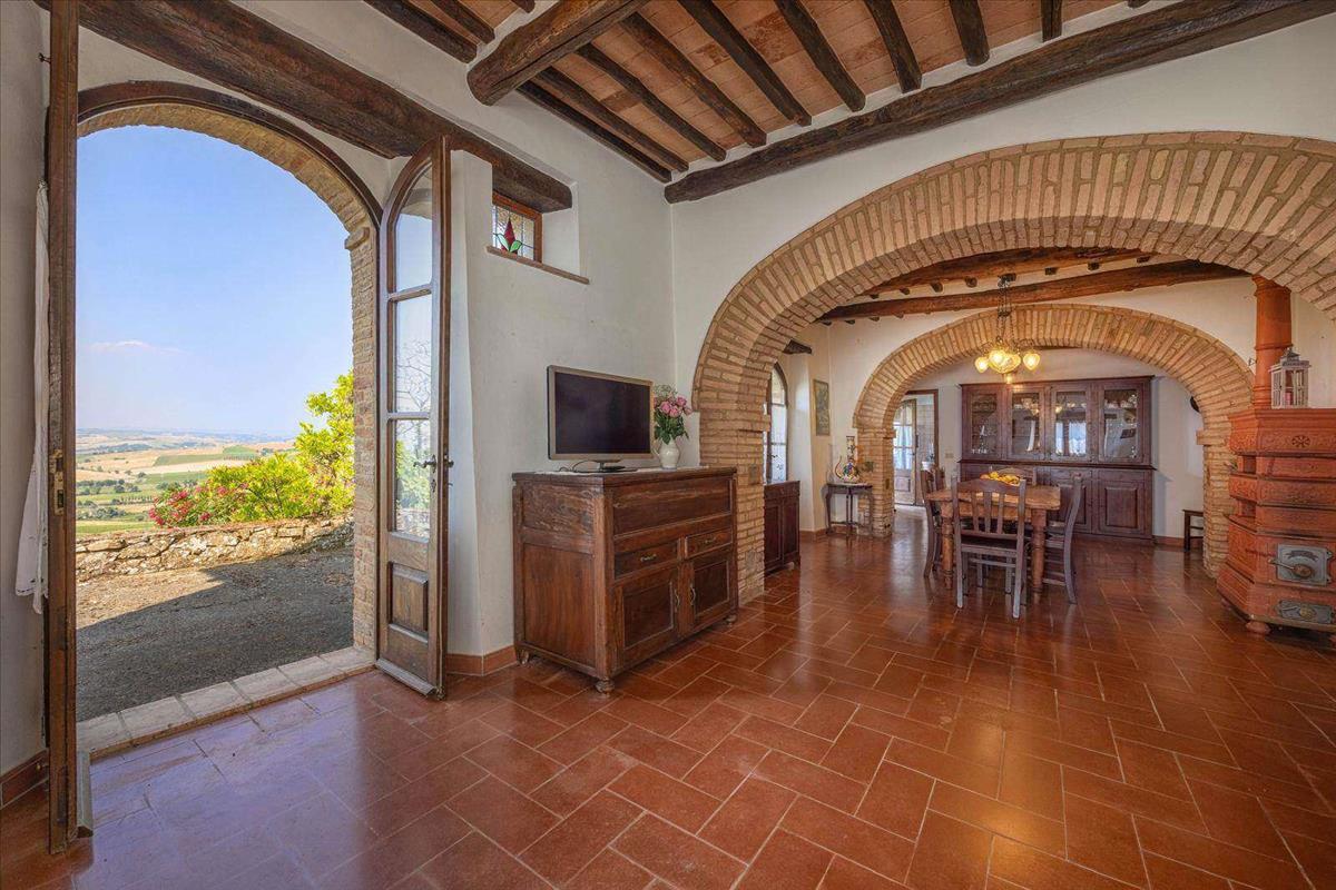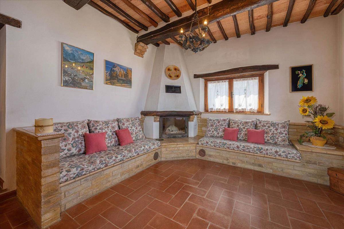 A hagyományos kőhomlokzat, az ívelt ajtók, a terrakotta padló, a boltíves mennyezet és a megvilágított fa gerendák megőrzik a vidéki Toszkána autentikus jellegét, tükrözve az otthon gazdag örökségét.
