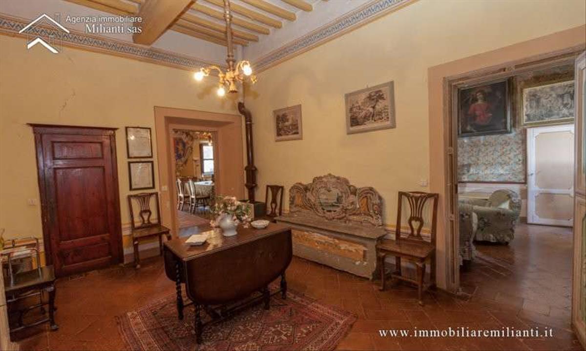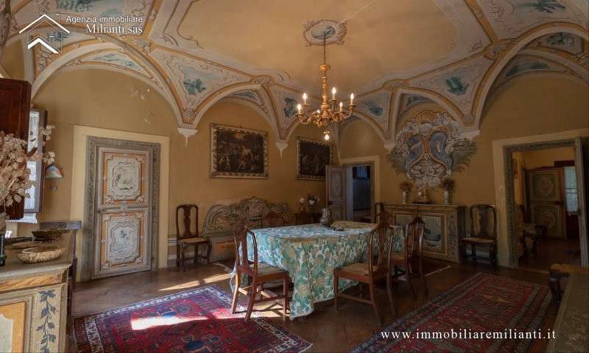 Az ingatlan egy nagy 700 m2-es villa, a házvezetőnő rezidenciája, amely további 100 m2, és egy olf széna 120 m2. A fő villa három emeletes, és tele van csodálatos freskókkal és eredeti vintage bútorokkal. Ez a fő villa 8 en-suite hálószobával rendelkezik; van benne egy mesés, freskókkal díszített társalgó, két nappali, boltíves mennyezettel, egy nagy étkező-szoba, két doboz-szoba, fedett terasz, egy játszószoba és további két fürdőszoba. Az alagsorban széles konyha kandallóval, keresztezett mennyezettel, valamint a pincék, garázs és fürdőszoba található. Egy belső lépcsőház segítségével a mezzanine padlóra is feljuthatunk, ahol egy stúdió és egy en-suite kétágyas hálószoba kapott helyet. A villa mellett található a házvezetőnő lakhelye, ahol valójában él, mert az ingatlant rendszeres karbantartással gondozza, és a szénakazalban, amelyet teljesen felújítani kell.
